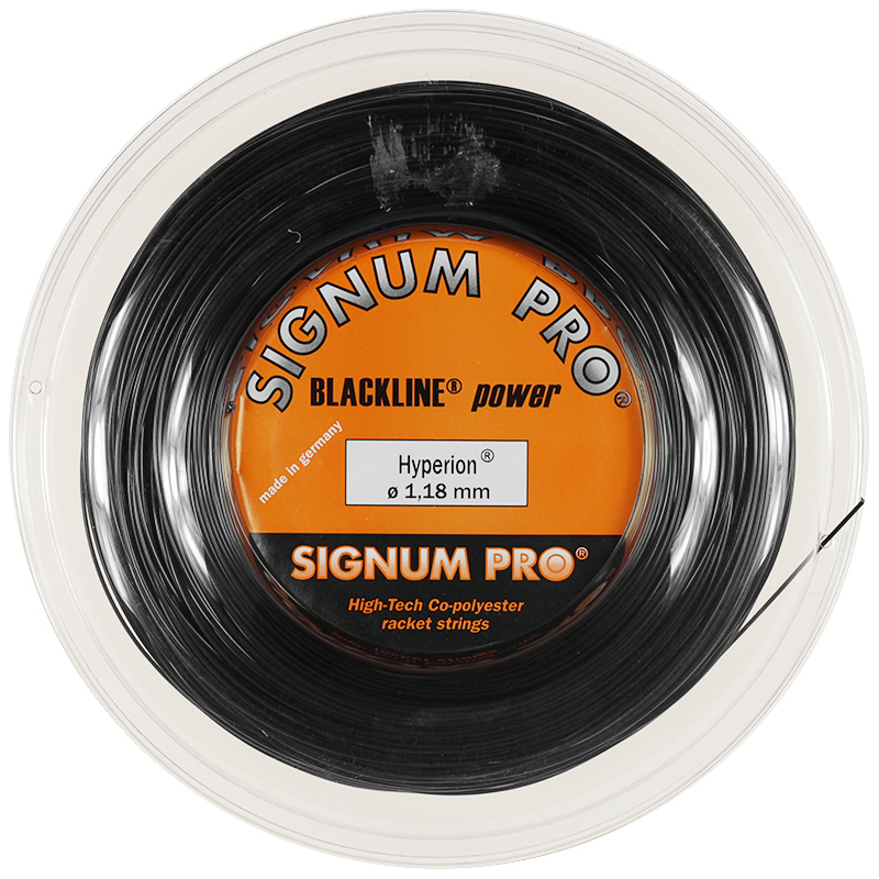 Signum Pro Blackline Hyperion (Diamond Black) 200m reel Posted 1st December 2020 by Charlie Signum Pro Blackline power Hyperion (diamond-black) 200mSignum Pro’s Blackline power Hyperion takes Co-polyester strings to a new level due to its optimized molecular structure.Blackline power Hyperion offers players outstanding power combined with excellent playability and comfort without sacrificing durability. Hyperion maintains Signum Pro’s legendary reputation for producing strings with minimal tension loss and string movement…. Read more »