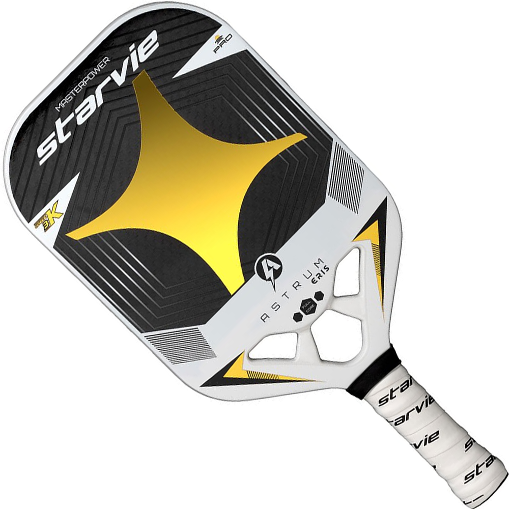 StarVie Astrum Pickleball Paddle Posted 17th October 2023 by mike StarVie Astrum Pickleball Paddle The Astrum paddle is ideal for all player types who are looking for a powerful paddle. The paddle has a large face surface area and a slightly larger grip which allows this paddle to be a technical one.