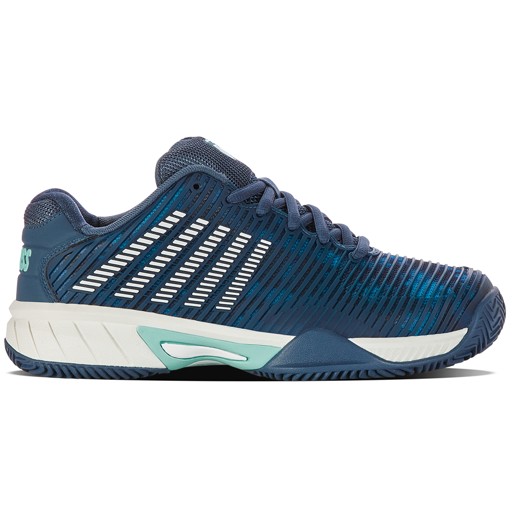 K-Swiss Junior Hypercourt Express 2 HB All Court Shoe (Indian Teal/Star White/Moonstruck) – Size 3.5 UK Posted 8th September 2024 by mike K-Swiss Junior Hypercourt Express 2 HB All Court Shoe (Indian Teal/Star White/Moonstruck) This popular offering is almost identical to the adult Hypercourt Express. Lightweight, comfortable, and breathable this shoe was made for the competitive junior player who demands high performance and top level design from their footwear.
