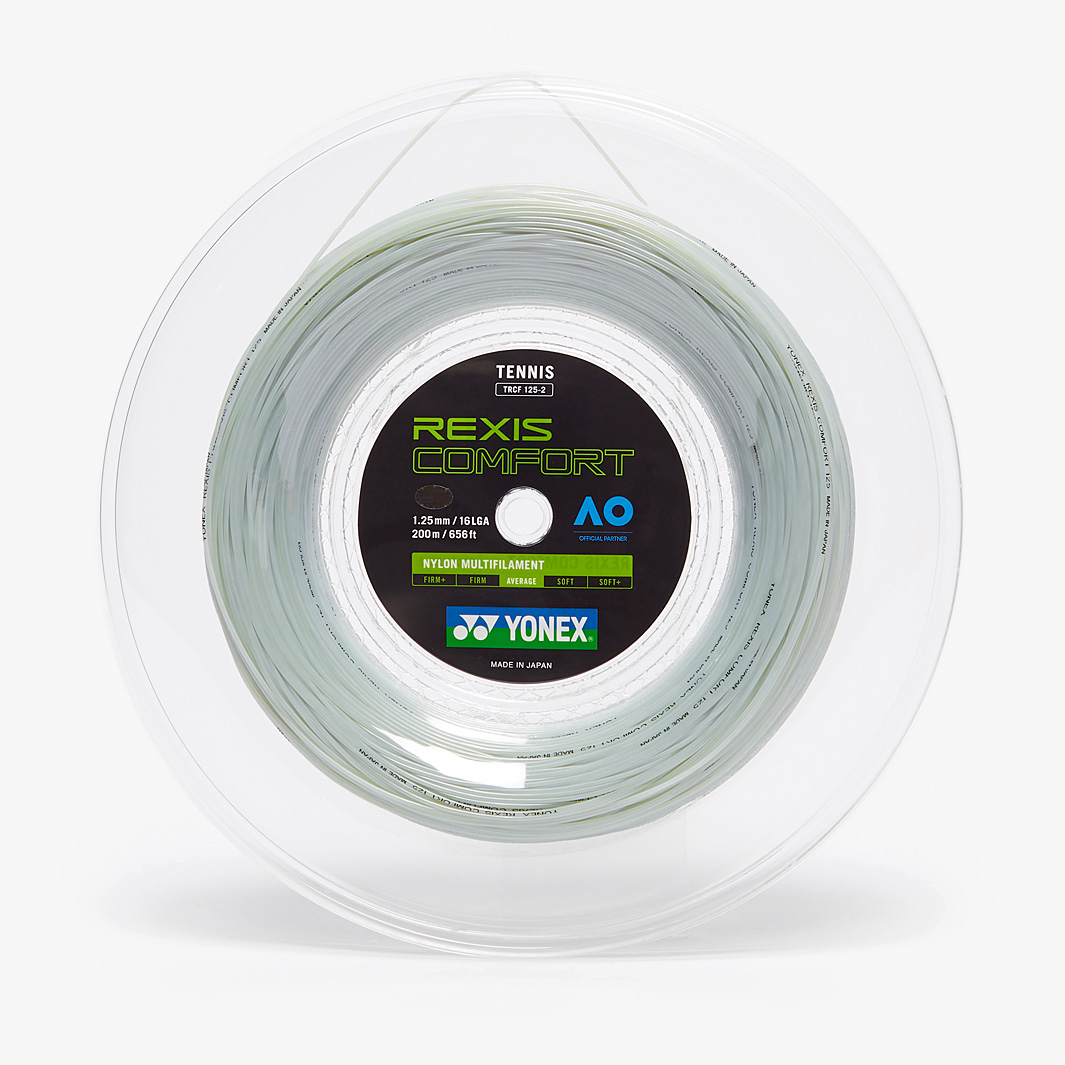 Yonex Rexis Comfort 200m Reel Posted 1st December 2021 by Charlie Yonex Rexis Comfort 200m Reel The FORTIMOTM polyurethane material combines flex, repulsion, and durability while maintaining a brilliant white colour due to its non-yellowing properties. Gauges: 1.25, 1.30