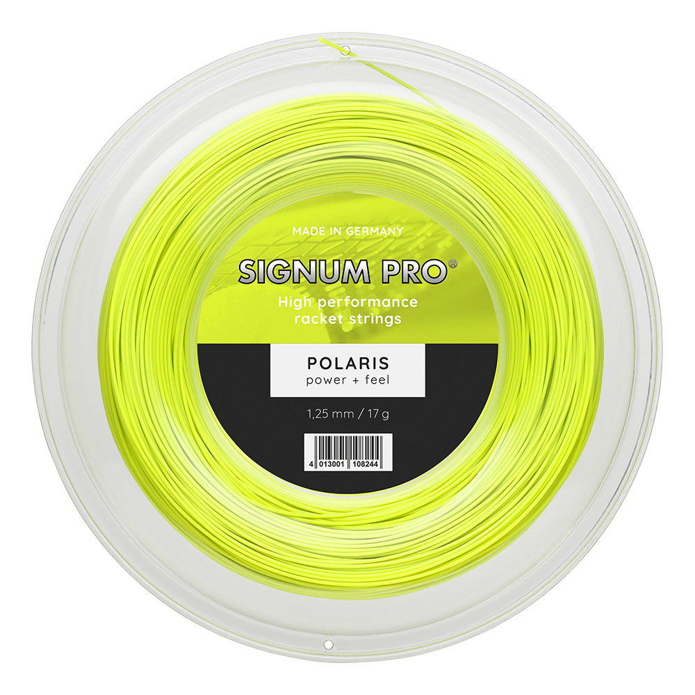 Signum Pro Polaris 1.30mm 200m Reel Posted 16th July 2021 by Charlie Signum Pro Polaris 1.30mm 200m ReelThis Signum Pro Polaris string is perfect for players looking for a softer than average monofilament for increased comfort and ball speed. Colour: YellowGauge: 1.30mmLength: 200mString Type: Polyester