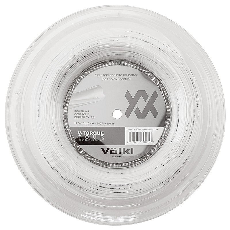Volkl V-Torque Tour 200m Reel Posted 1st December 2020 by Charlie Volkl V-Torque Tour ReelV-Torque Tour is a comfortably firm co-poly string that rewards full strokes with very easy targeting. With its twisted, six-sided profile, this string grips the ball very effectively, allowing you to load it with spin. Colour: WhiteGauges: 19 (1.10mm), 18 (1.20mm), 17 (1.25mm), 16 (1.30mm)Length: 200mString Type: Shaped Polyester