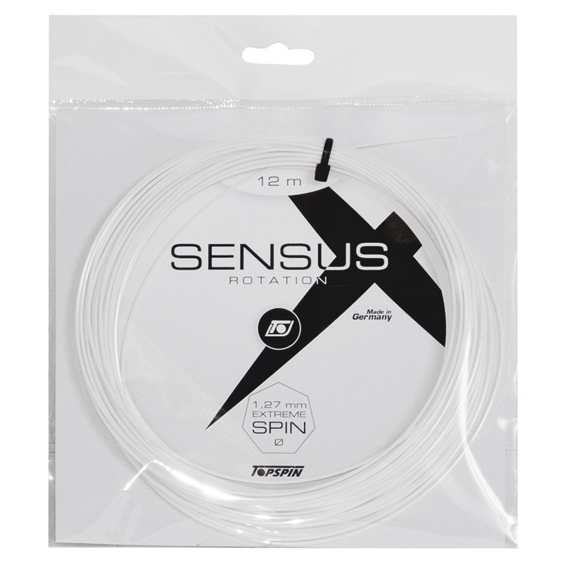 Topspin Sensus Rotation (Natural) 12m Packet Posted 1st December 2020 by Topspin Sensus Rotation (Natural) 12m Packet Topspin Sensus Rotation is a co-polyester with an heptagonal profile. Because of the heptagonal profile this string has exceptional spin properties and produces increased ball speed. In addition, this string provides excellent control and playability. Gauges: 1.27mm, 1.31mm