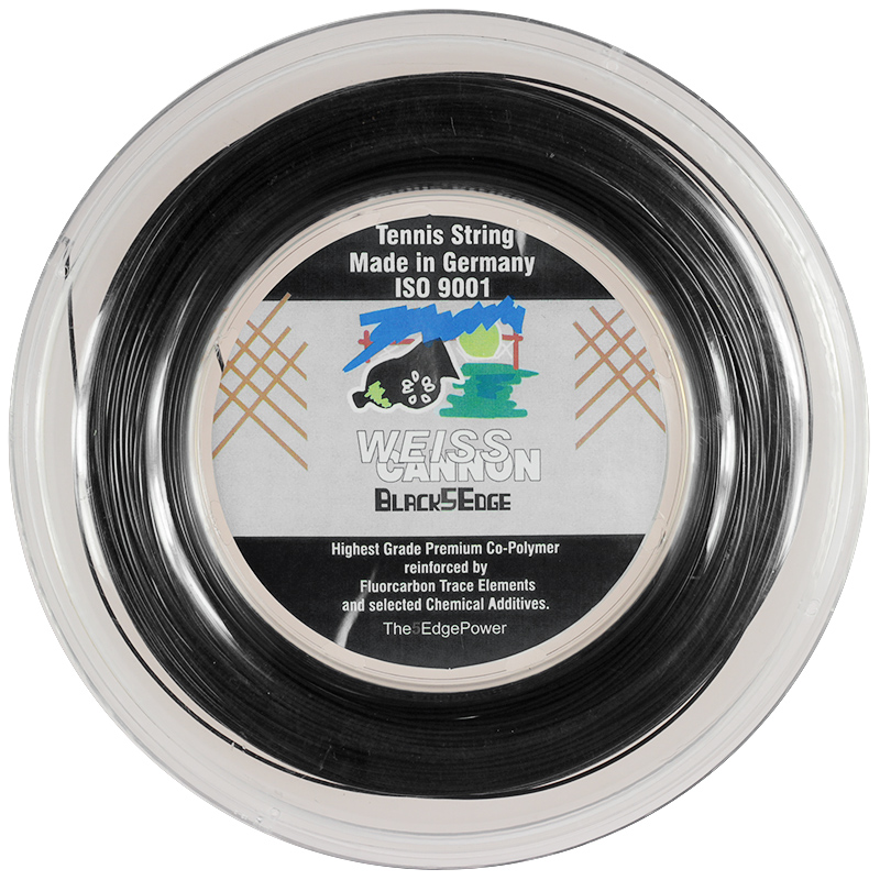 Weiss Cannon Black5Edge Power 1.24mm (Black) 200m reel Posted 1st December 2020 by Charlie Weiss Cannon Black5Edge PowerThis is a brand new tennis string which generates an enormous spin potential. Black5Edge Power is available in 12m sets and 200m reels. The string incorporates similar materials from which Weiss Cannon’s flagship Silverstring is made. New technology in the Black5Edge is the five faceted pentagon profile. This exerts a sharp edge… Read more »