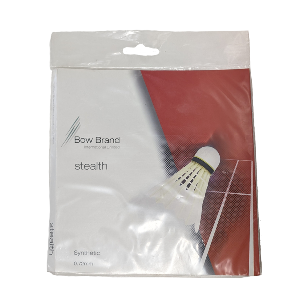 The Bow Brand Stealth badminton string is a synthetic string for ultimate playability Multifibre centre core with coated braided outer sheath Length 11m (36′) Rec tension range 7-10kg (16-22lb) Suited to a fast aggressive style of play – extremely responsive with excellent power & control