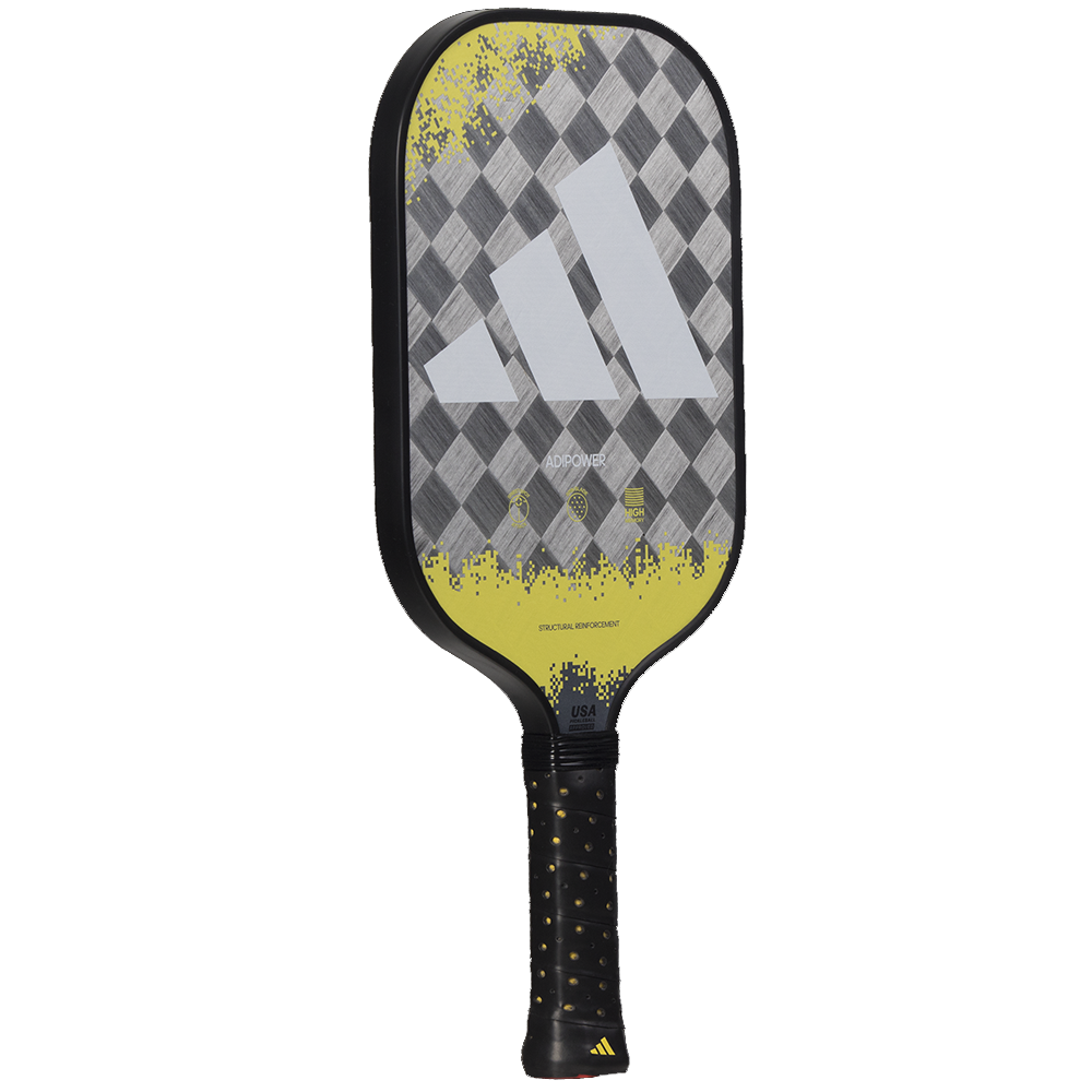 The Adipower Attack 3.2 paddle has been designed for the most demanding pickleball players, thanks to the carbon fibre and fiberglass construction which provides a lightweight yet durable paddle.
