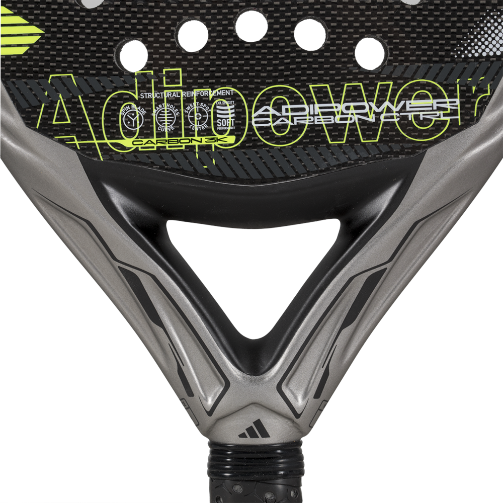 The Adipower Carbon CTRL is designed to maximize control and precision, blending advanced technologies and high-end materials to elevate your game. Featuring a combination of carbon reinforcements, strategic hole patterns, and responsive EVA rubber, this racket offers unmatched spin and control while maintaining power in your strikes.