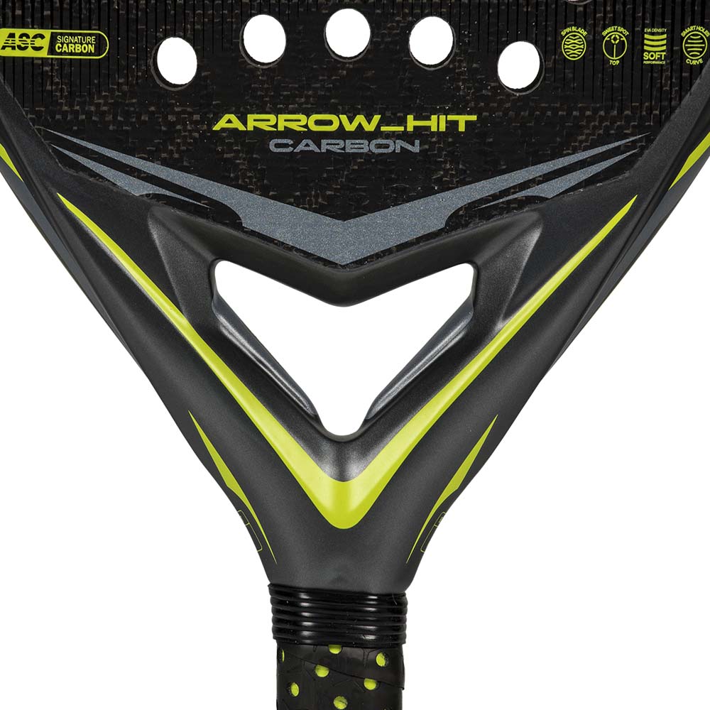 The Adidas Arrow Hit Carbon Attk padel racket has a diamond headshape with a high sweetspot. This increases power in attacking shots and suits an aggressive playing style at a pro level. Technologies include:
