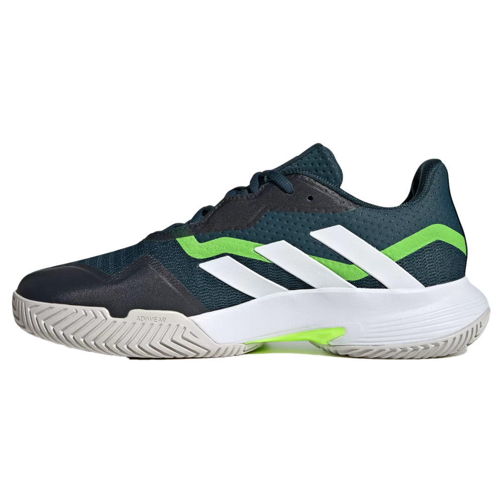 Keep your opponent exactly where you want them in adidas shoes created to give you control of hard courts. These CourtJam Control shoes have a breathable mesh upper and a comfortable Bounce midsole to ensure your mind stays on your game. Torsion System in the midfoot helps you control slides and sideways movements. Created with insights from men’s tennis, the hard-wearing Adituff abrasion zone means you can put your all into every shot.Made with a series of recycled materials, this upper features at least 50% recycled content. This product represents just one of Adidas’ solutions to help end plastic waste.