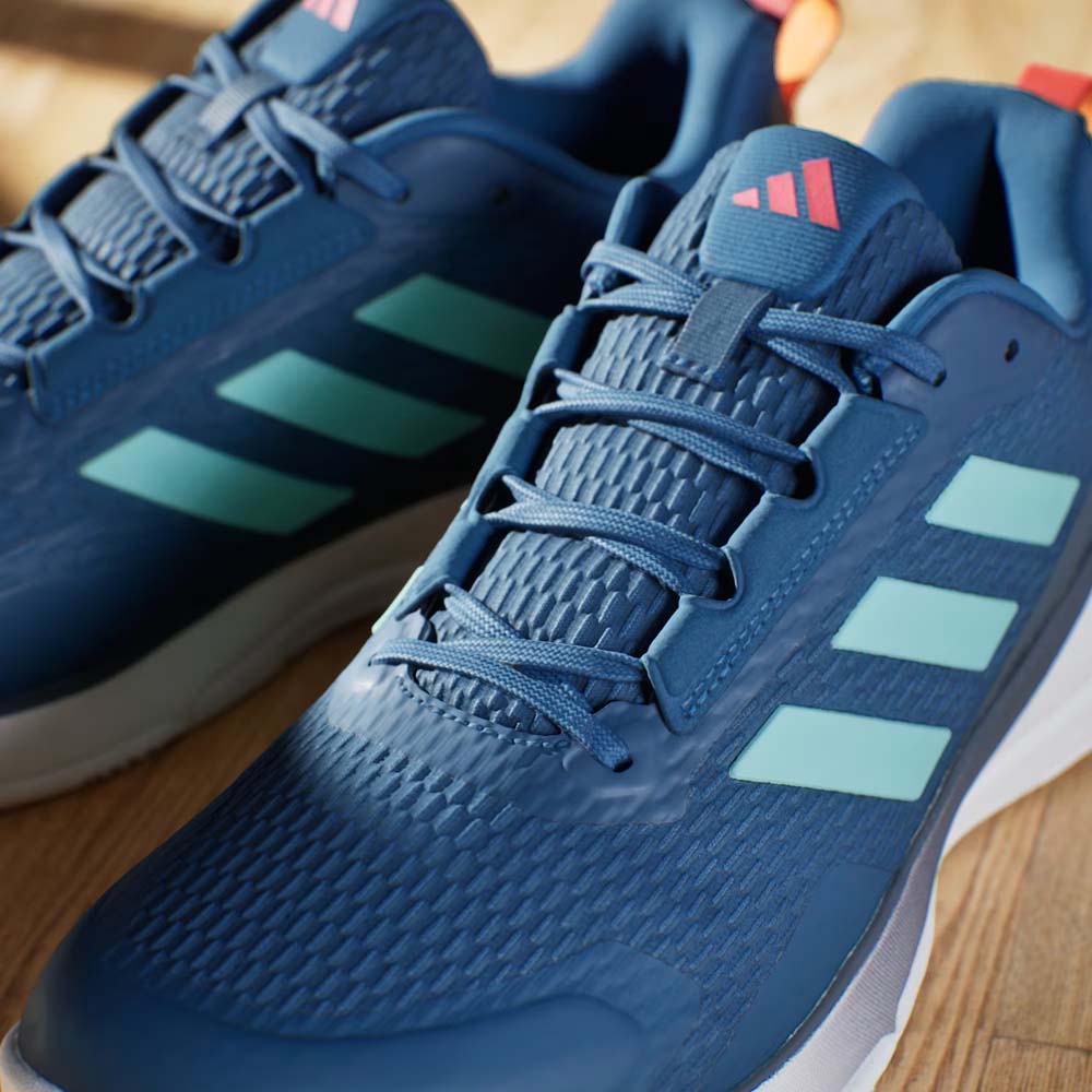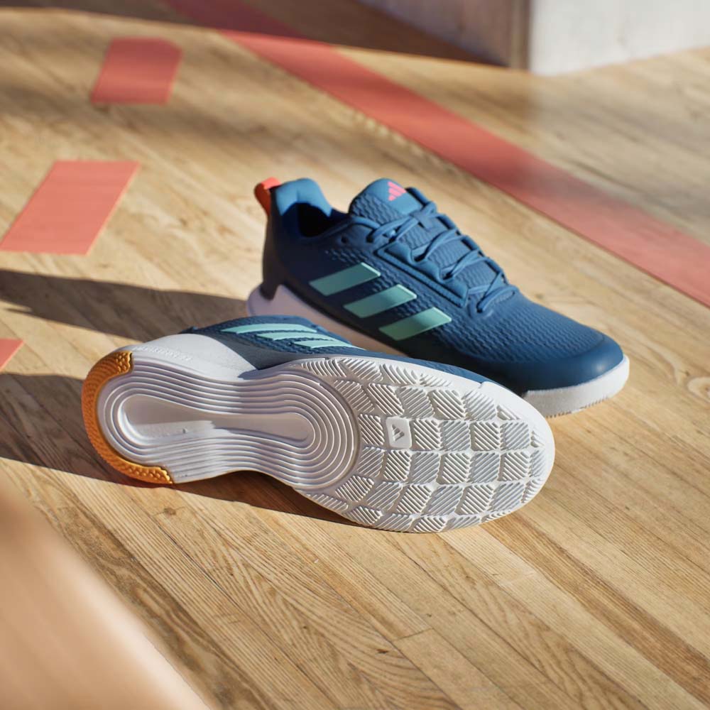 Underneath, a non-marking Adiwear outsole ensures razor-sharp control and grip on all indoor surfaces. These shoes have an environmental focus too, utilising at least 20% recycled materials in their construction, contributing to waste reduction and resource conservation.
