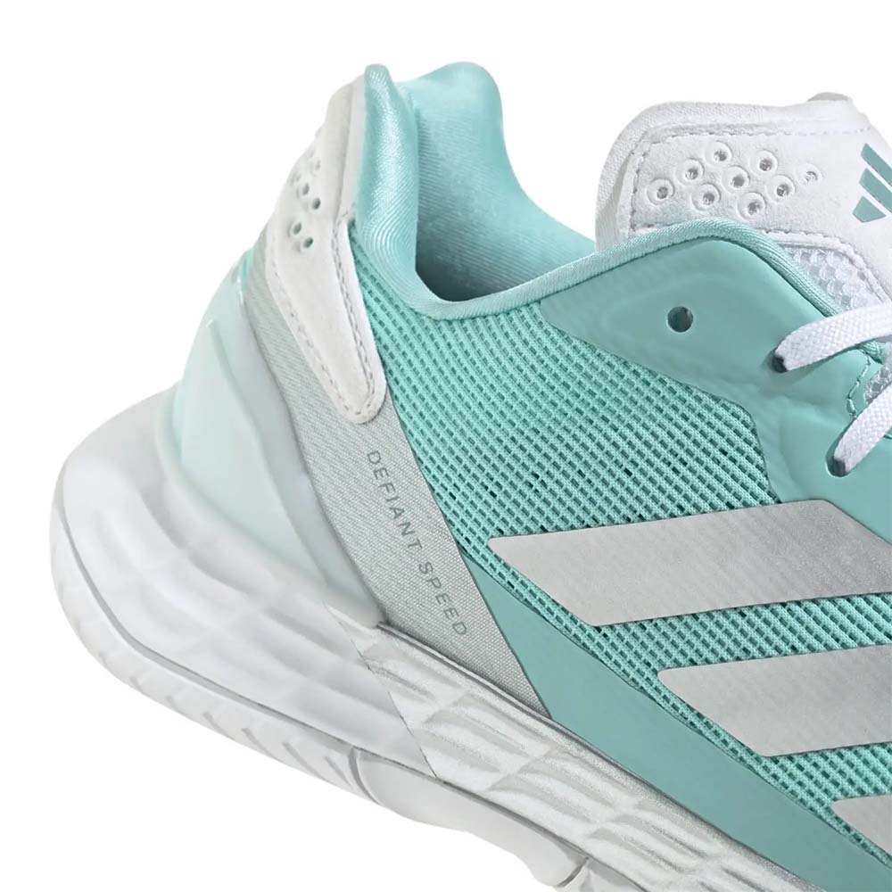 The Adidas Defiant Speed 2 Aqua Women All Court tennis shoe is a lightweight, cushioned option for intermediate to advanced women’s tennis and padel players with an aggressive and agile style.