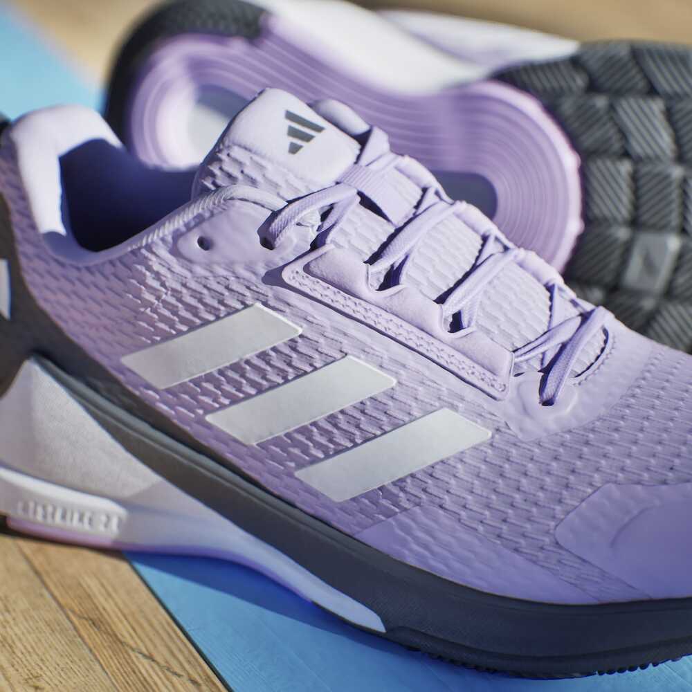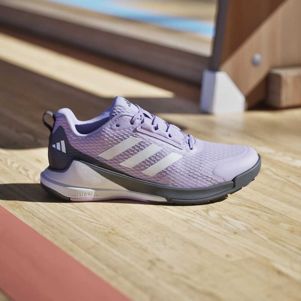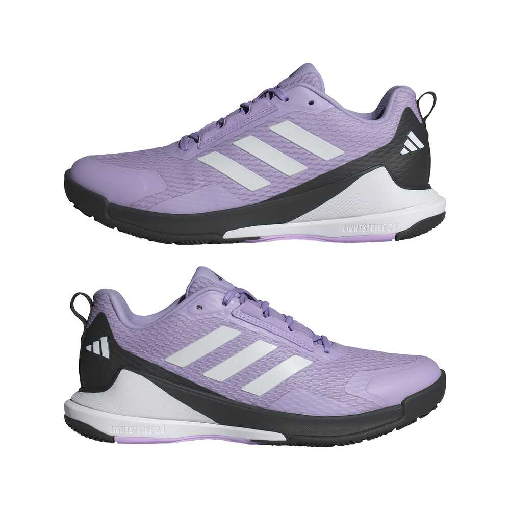 The lightweight mesh upper, reinforced with TPU film, ensures breathability and long-lasting wear. adidas LIGHTSTRIKE cushioning delivers feather-light responsiveness, helping you move faster and react quicker on the court. A regular fit offers comfort and stability, ideal for dynamic indoor sports.