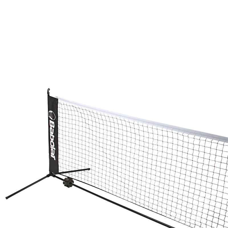 A tennis net that is quickly convertible into a badminton net. Very quick to put up and to dismantle. Light and modular, it is very handy.