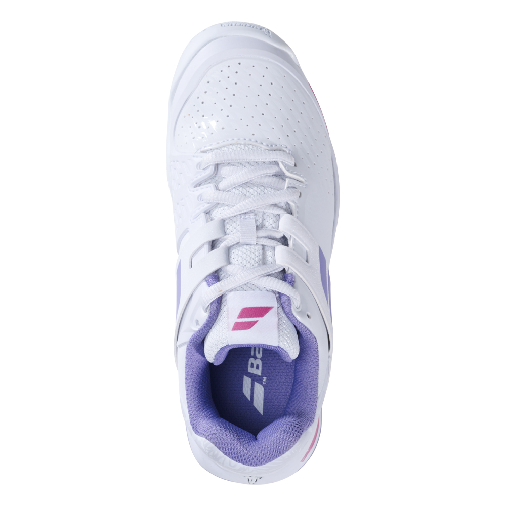 Babolat Propulse Junior All Court Tennis Shoe (White/Lavender)The Propulse Junior has been made for competitive junior with explosive footwork. The Propulse shoe offers maximum durability and ultimate support for future champions who are tough on shoes.