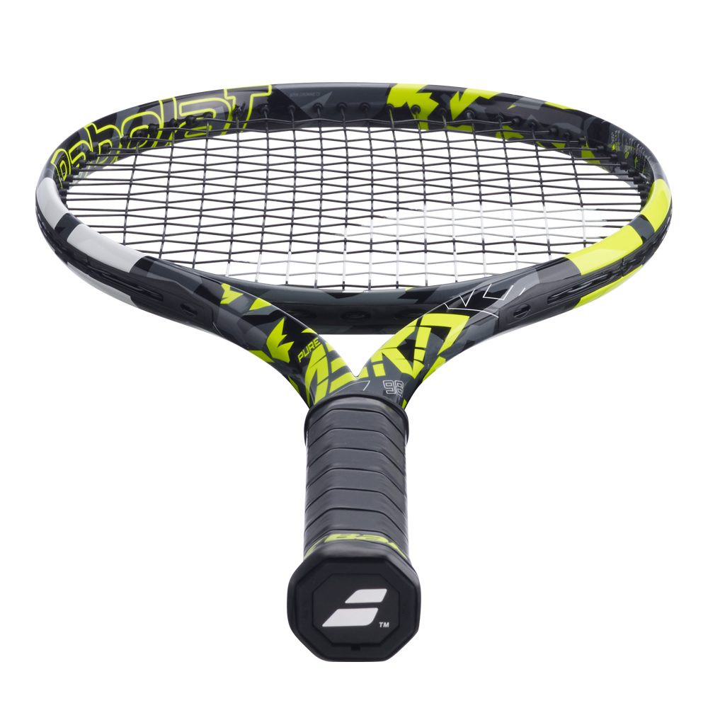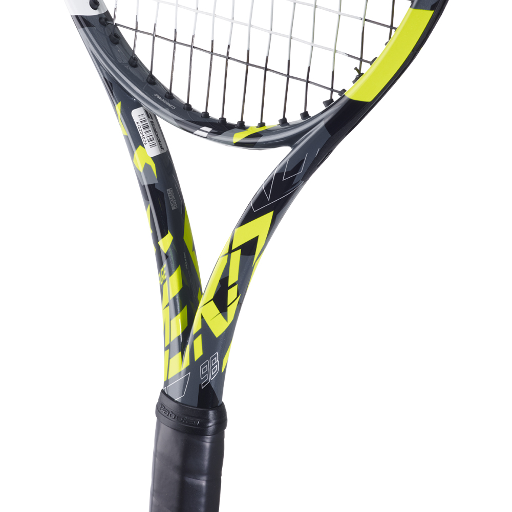 Babolat Pure Aero 98 Tennis Racket (Frame Only) (2023)The combination of a 98 inches squared headsize, a thin 21/23/22 beam and a 16/20 string pattern brings control and precision to the spin-friendly Pure Aero family. A must-try for the modern performance players.