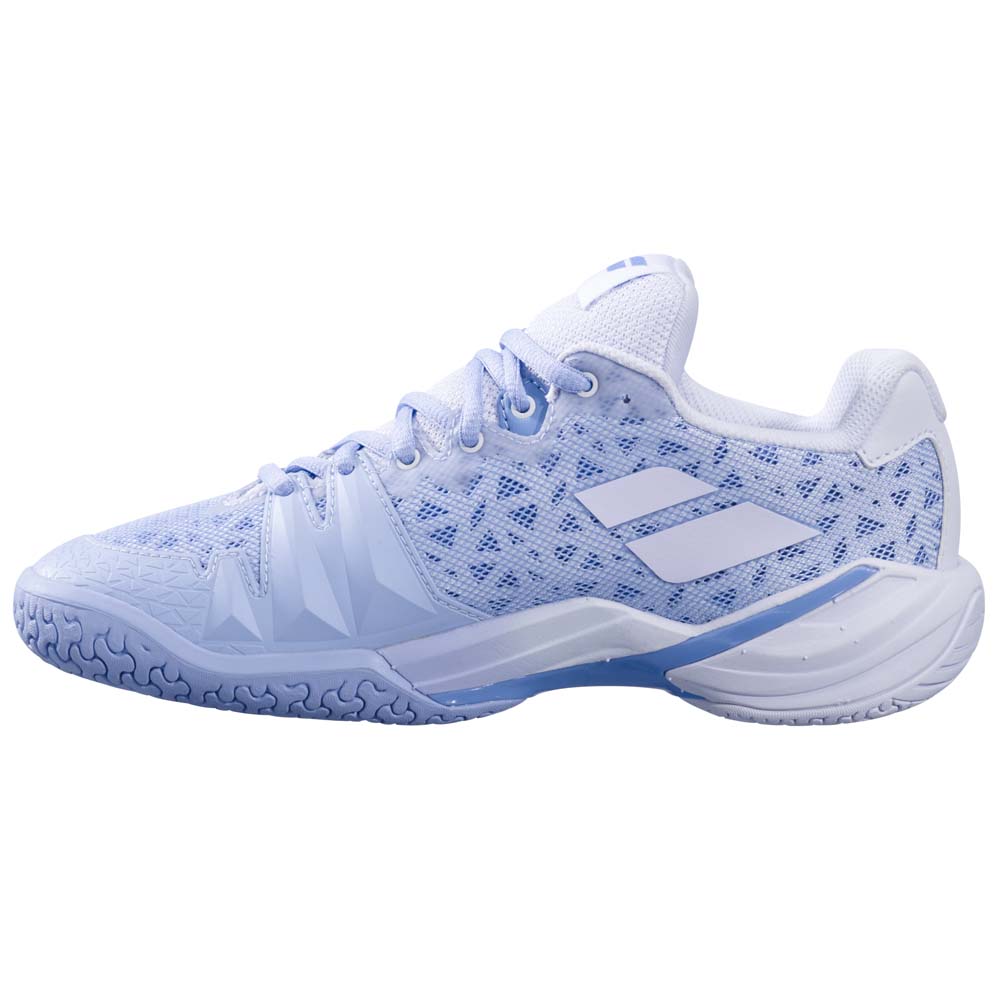 Key Performance TechnologiesActive Flexion & 9-Point Sole: This patented Babolat design segments the sole into nine key pressure points. This allows the shoe to be more responsive to the specific foot mechanics of badminton, enhancing agility during quick changes of direction.DCS Tech Midsole: A bi-density midsole system that provides two benefits: soft shock absorption for heavy landings and a firm “dynamic” response for explosive pushes.Ariaprene & 2-Mesh Upper: Two mesh layers with recycled foam that provides a balance of non-stretch support and high breathability to keep feet cool during long matches.Michelin Badminton Rubber: An outsole specifically formulated for indoor courts, offering a high-friction grip to prevent slipping and increased durability.Lateral & Toe Protection: Includes a heavy-duty rubber guard on the inner forefoot to protect the shoe from wear.