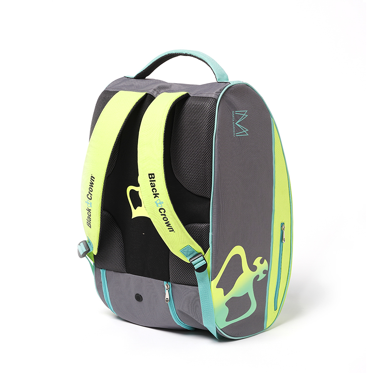 The Hurricane Black Crown by Marta Marrero padel bag is made with 100% polyester materials, Jacquard 600 and D210 lining, waterproof.