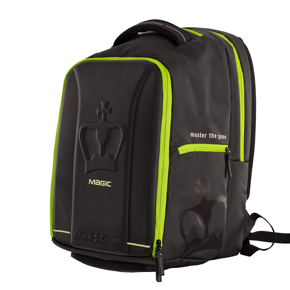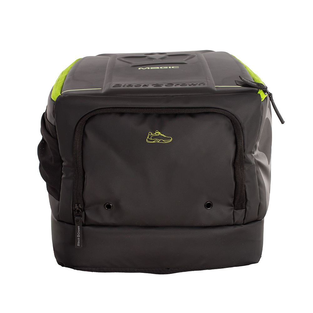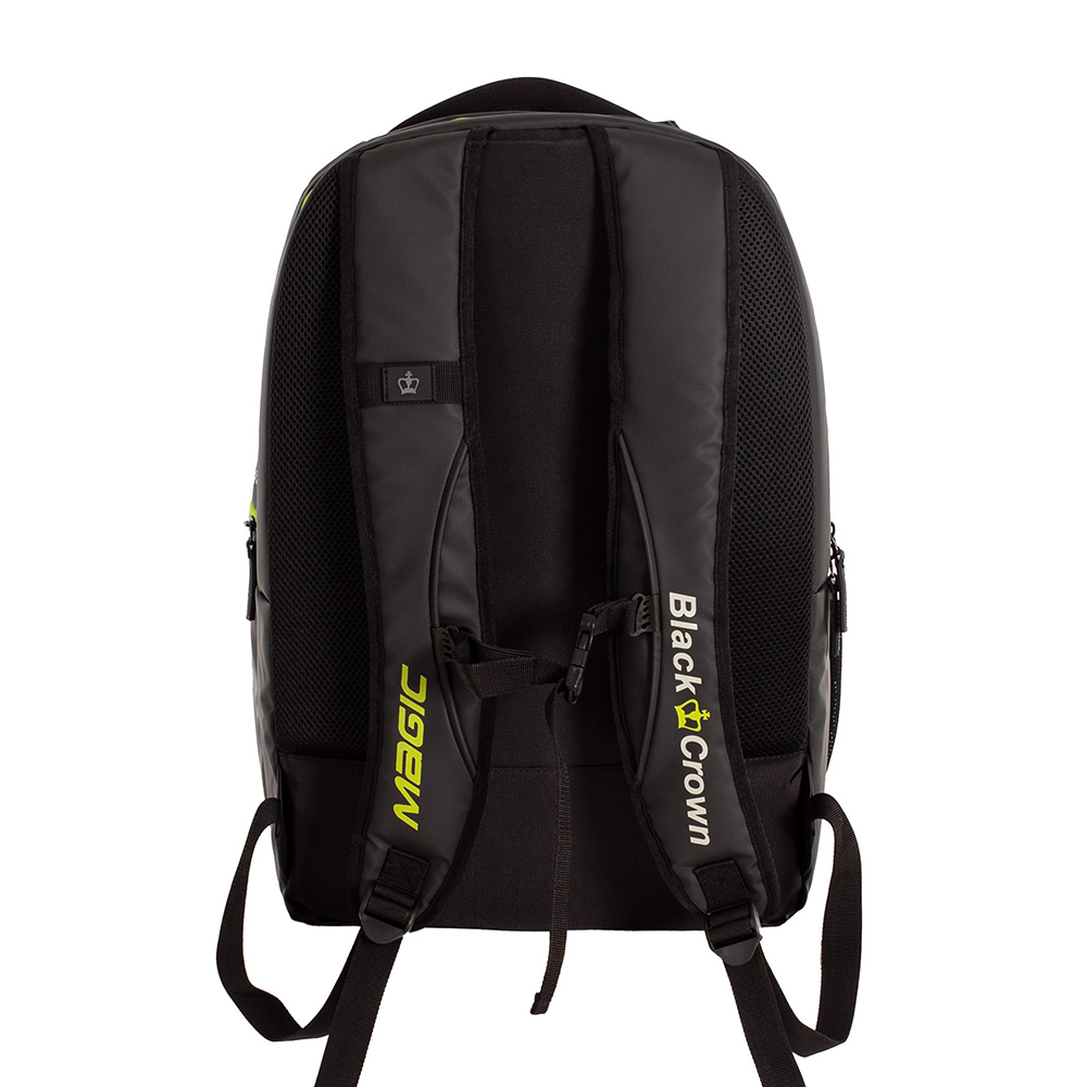 The Black Crown Magic backpack is made of 30% Eva and 70% PVC materials on the outside and 100% polyester on the inside. It combines burgundy and black and black and yellow colors . Always looking for the best design for the player.Measurements: 31cm long, 20cm wide, 49cm high.Compartment with capacity to store up to 2 paddles.1 central compartment with large capacity.1 small compartmentBottom pocket for shoes.Exterior pockets for personal items.Two padded wings.