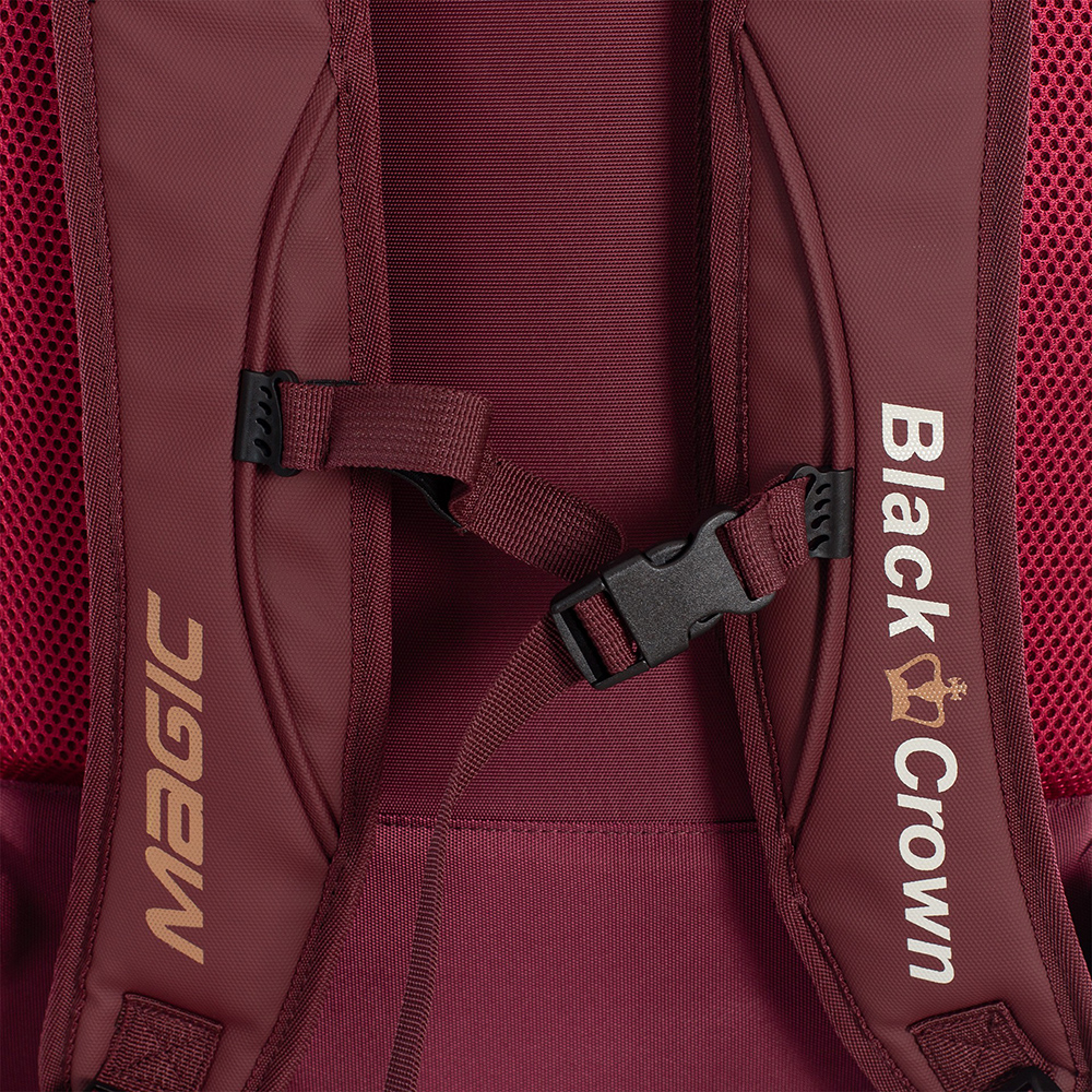 The Black Crown Magic backpack is made of 30% Eva and 70% PVC materials on the outside and 100% polyester on the inside. It combines burgundy and black and black and yellow colors . Always looking for the best design for the player.