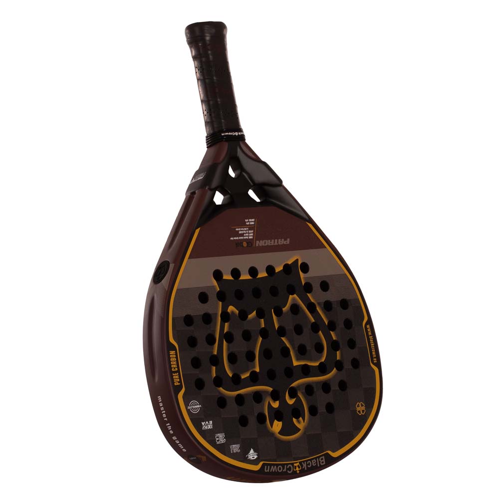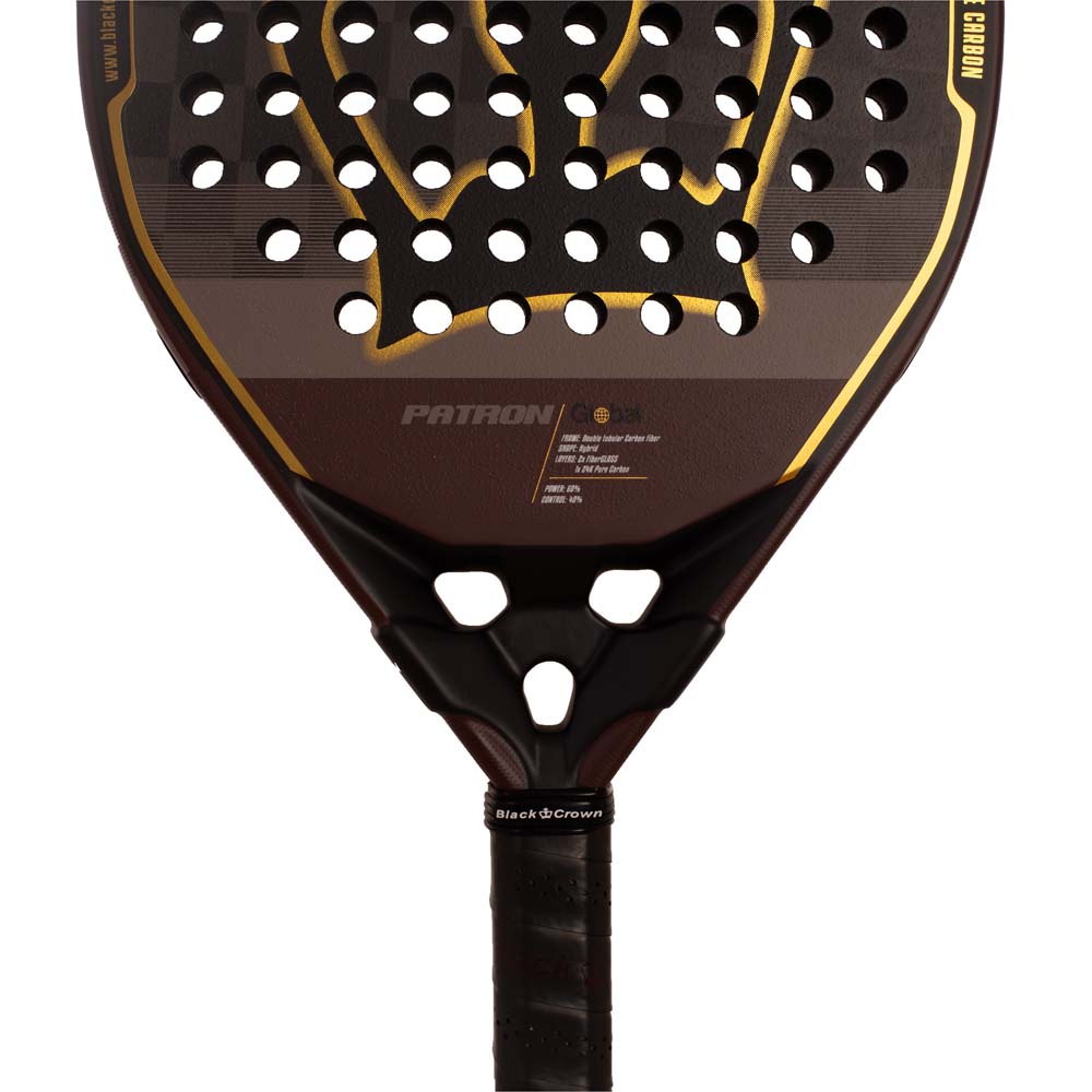 The Black Crown Patron Global is a high-performance padel racket engineered for players who want a balance of power, control, and spin. In short, this racket is a tech-heavy all-rounder designed for durability and customisation. It targets players who need a stable, vibration-free response without sacrificing the explosive power of carbon fibre.