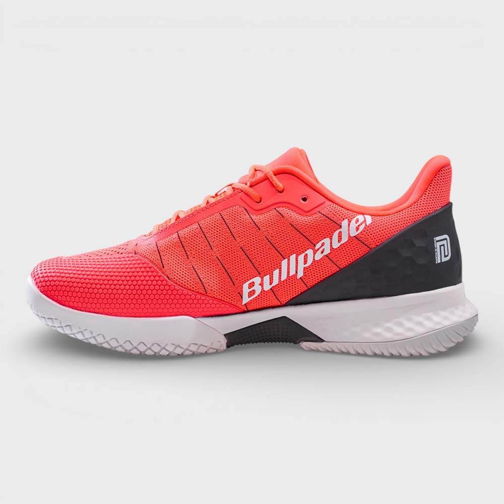 The Bullpadel Xplo Vibram 26V Coral are the official shoes of Martín Di Nenno, designed for players who demand maximum speed, responsiveness, and control on the court.