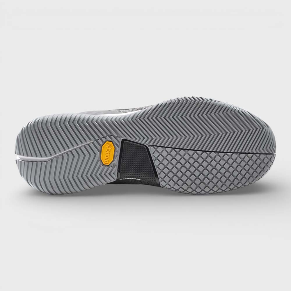 Inspired by the dynamic playing style of Martín Di Nenno, the Bullpadel Xplo Vibram 26V Dark Grey are built for players who compete at full intensity and never stop moving. Designed for speed and precision, this model delivers elite-level traction, stability, and responsiveness on court.