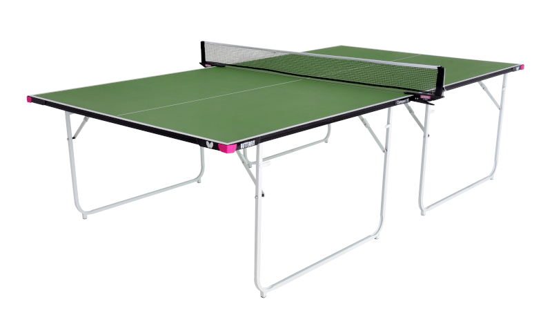 This Butterfly Compact 16 indoor table tennis table is designed especially for home use and in places where storage space is limited. It has a 16mm playing surface and features a classic design that is ready assembled and comes with a Butterfly Clip net, a post set, 2 reverse sponge bats and 3 quality practice balls so you can start playing immediately. The legs fold in for easier storage that takes up minimal space.
