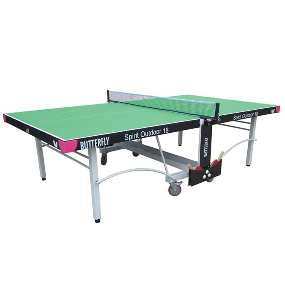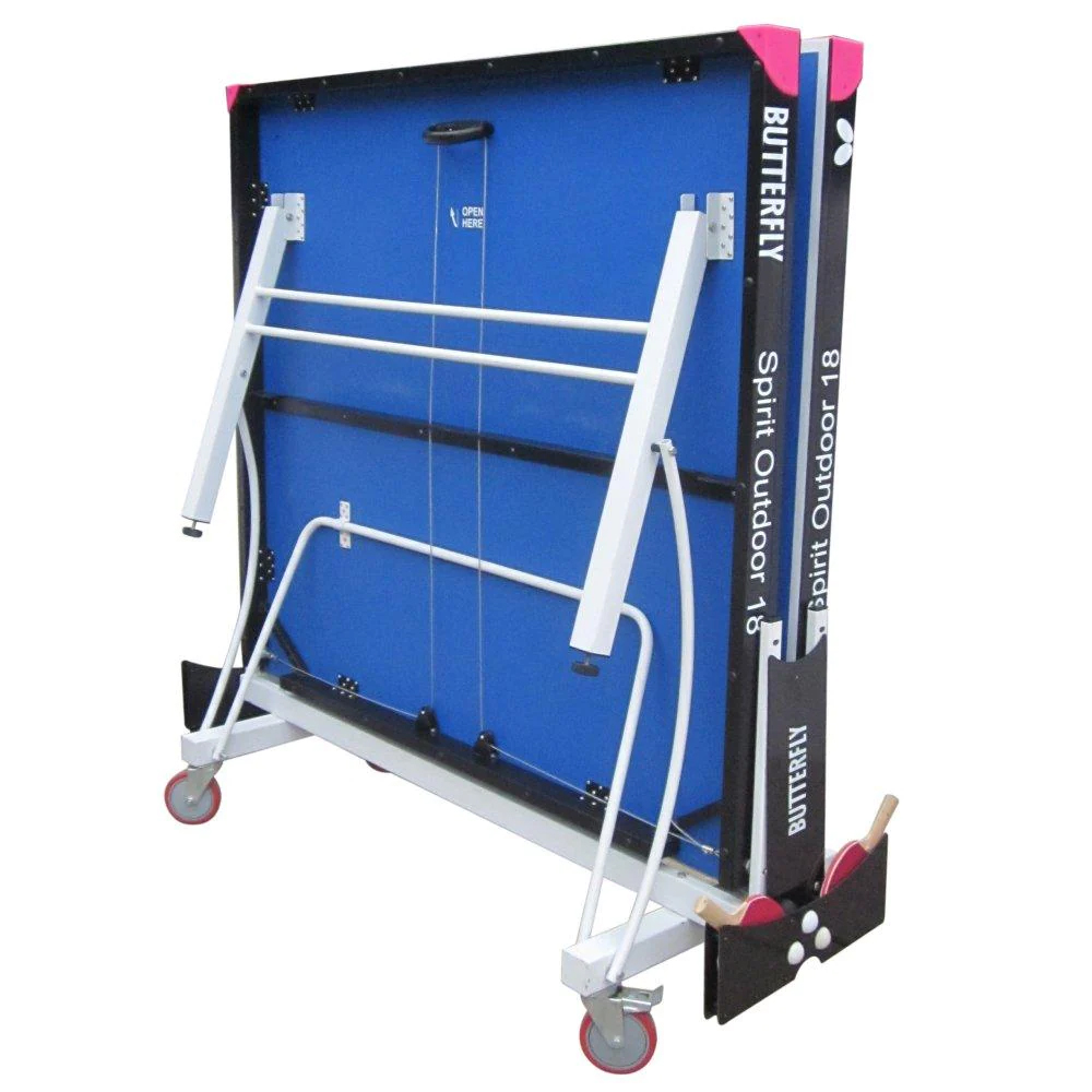 With a stylish and elegant look, the Butterfly Spirit 18 Rollaway is the top of the range outdoor model. It incorporates an 6mm melamine weatherproof top which has a playing performance similar to tournament tables. It is combined with the quickest and easiest system for setting up a table.
