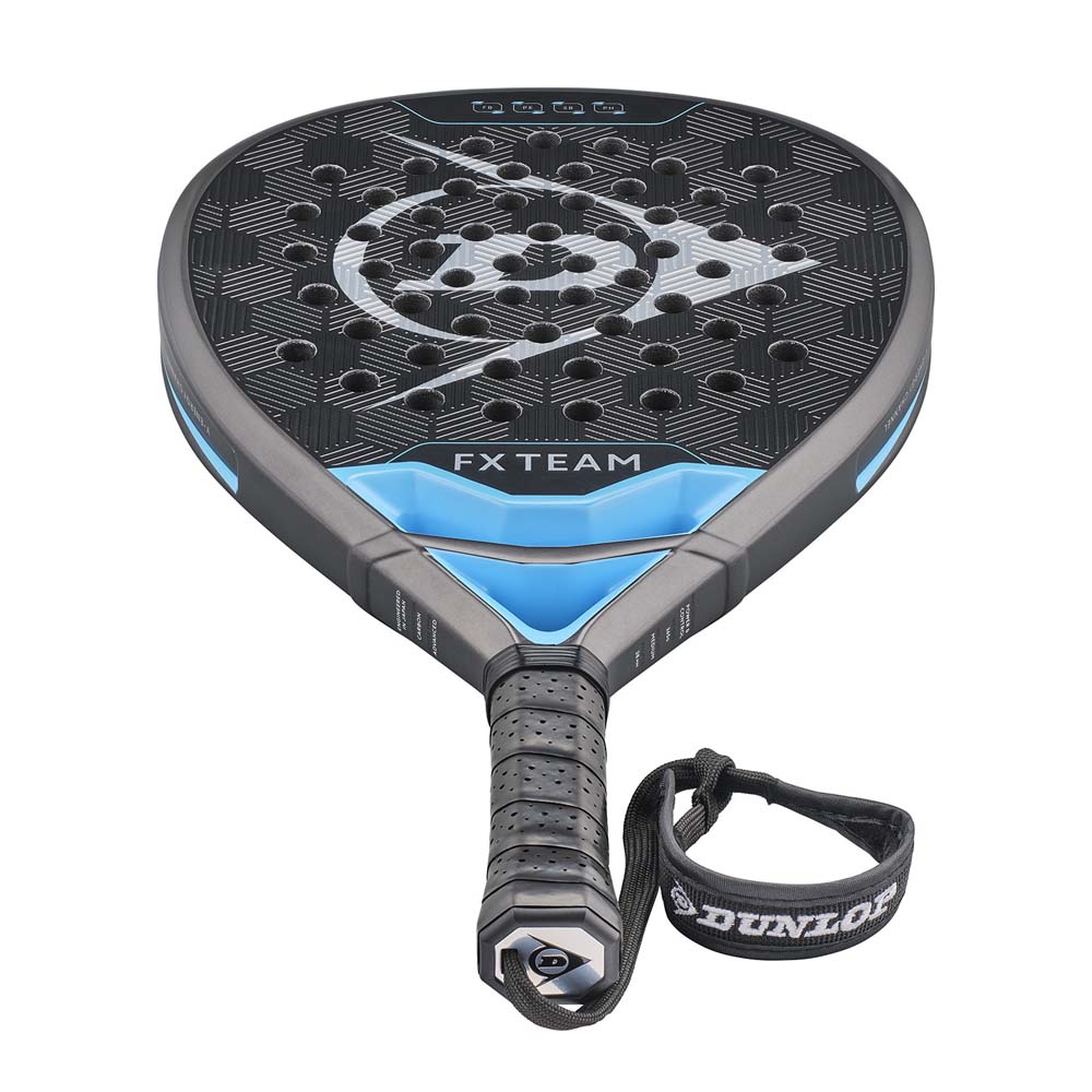 The Dunlop FX Team Padel Racket (2026) is engineered for attacking players looking for exceptional power by incorporating many features found in the high-end FX Pro model. It features a Diamond headsize and is constructed with Premium Carbon, enhanced by modern frame geometry. The core uses Pro EVA for outstanding performance on all shots. It is designed with a 365g weight and an even balance, providing a powerful yet manageable feel for aggressive play.