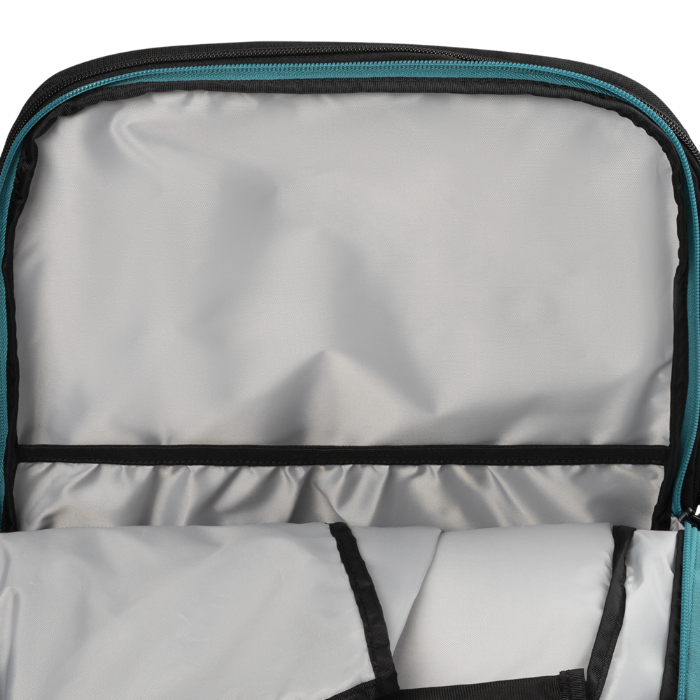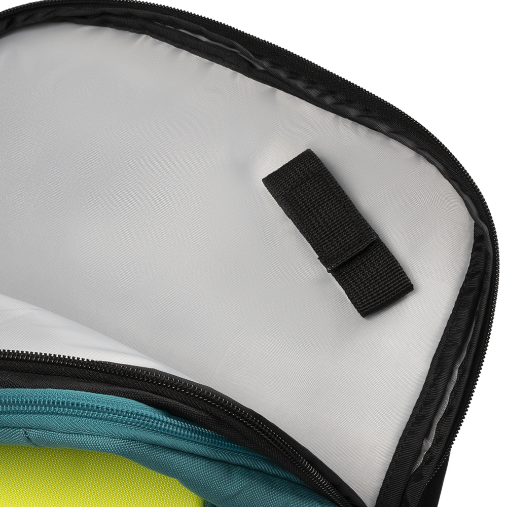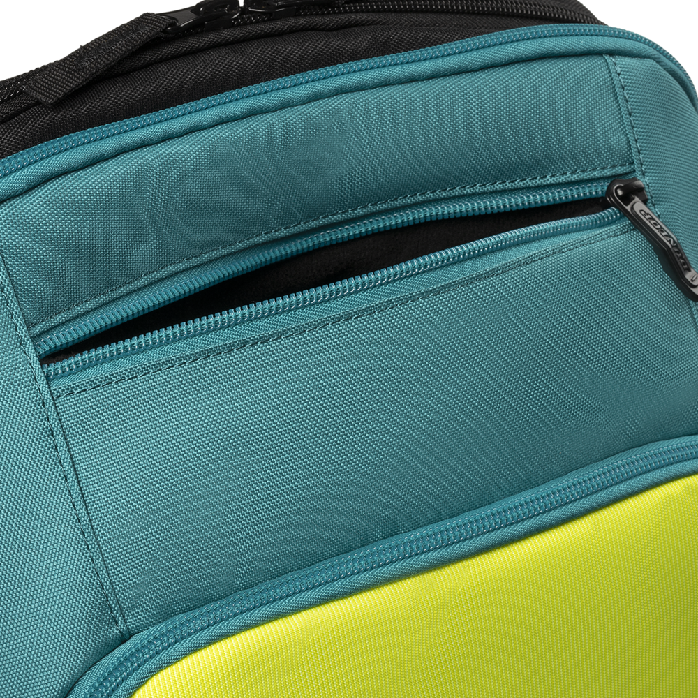 One front zipped pocket and smaller one on top for accessories. Ergonomic shoulder straps for a comfortable feeling during carrying the bag. Large main compartment for clothes and shoes. Rear compartment to hold up to two rackets. Side pocket to secure hold of a water bottle or tennis ball tube. Shoe pocket on the side for convenient and easy organization.