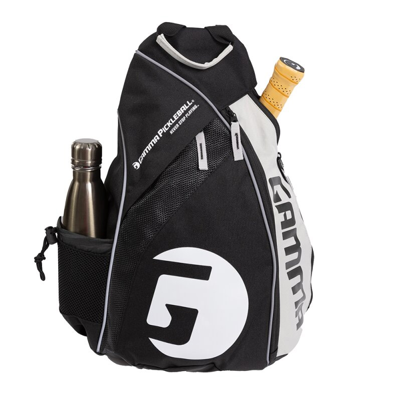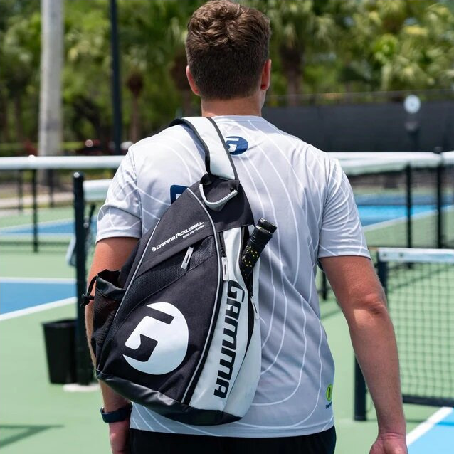 The GAMMA Pickleball Sling Bag is a compact pack designed to hold two paddles, six balls, and small accessories. It’s made from 100% polyester and features a padded shoulder strap for easy transport.