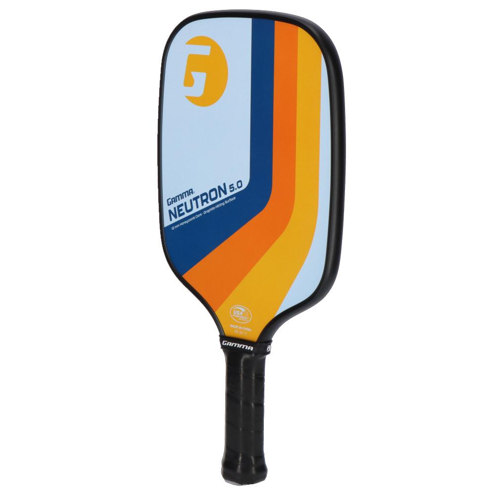 The Gamma Neutron pickleball paddle has been designed for intermediate players who are seeking complete control. The graphite hitting surface spreads out the sweet spot and delivers consistent feel throughout, and the specialized micro bead surface treatment enhances spin for consistent shot placement. The polypropylene core is 12mm to minimize shock, making it easier to maintain the correct position at the No Volley Zone during intense rallies. The GAMMA Hi-Tech grip provides comfortable and secure grip during play.