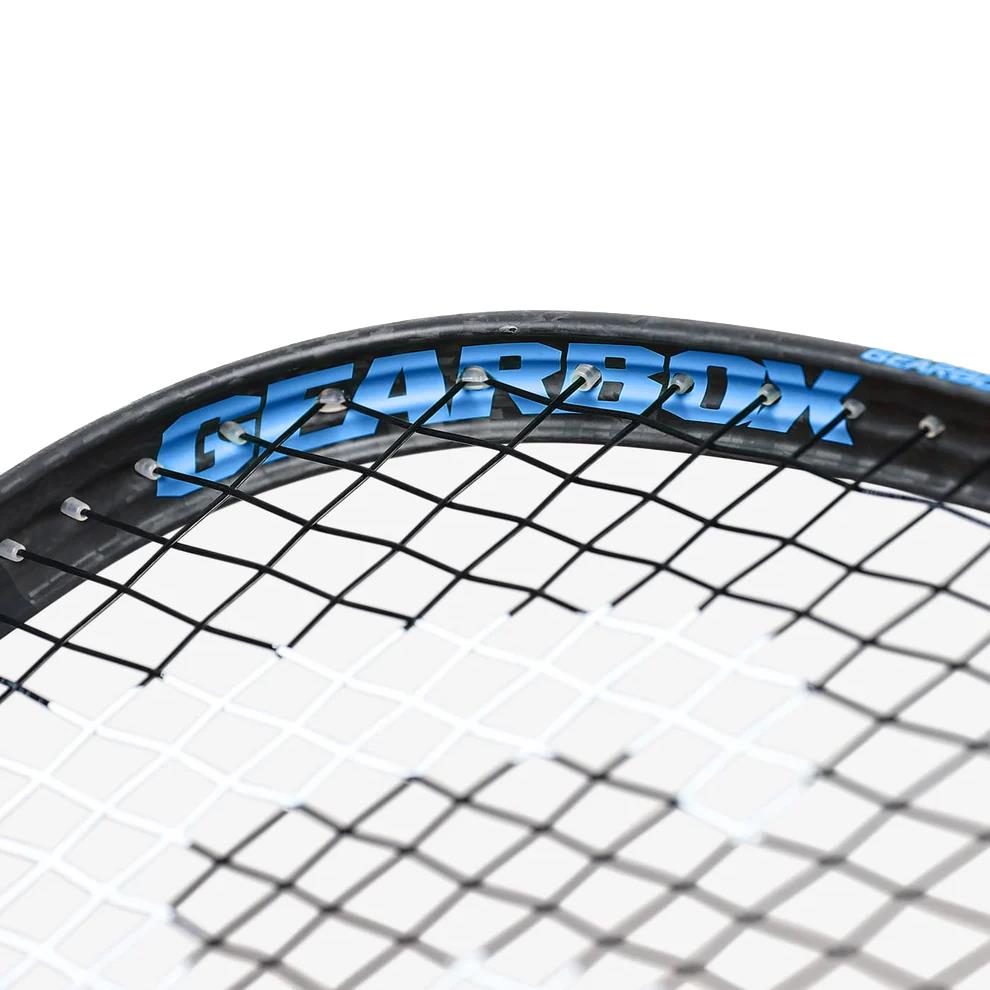 Introducing the GX1 Series by Gearbox, a powerhouse racquetball racquet designed for peak performance. Featuring Solid Frame Technology and a Concave frame shape, it maximizes power, offers effortless control, and ensures durability with a large sweet spot.