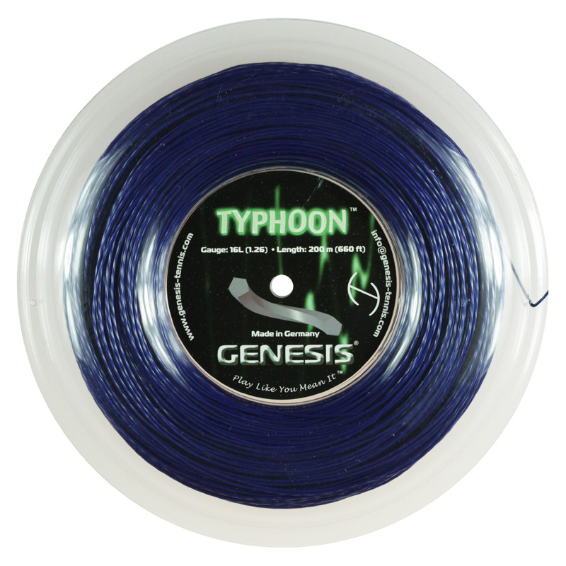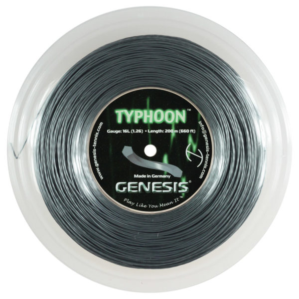Typhoon delivers outstanding spin along with pinpoint accuracy and unrivalled tension maintenance. Utilizing the most innovative and cutting edge technology, Genesis has created a string that excels in every category. Construction: Genesis Typhoon is made from a proprietary composite formula of high-tech polyester resin combined with new performance enhancing chemical additives. Typhoon goes through several heating and cooling stages. Extruded with a pentagonal profile, Typhoon is then additionally twisted axially for maximum bite. The poly ether material together with aluminum fibres offers players the best in feel and power. An extra coating of teflon increases the liveliness and offers a nice crisp stringbed.