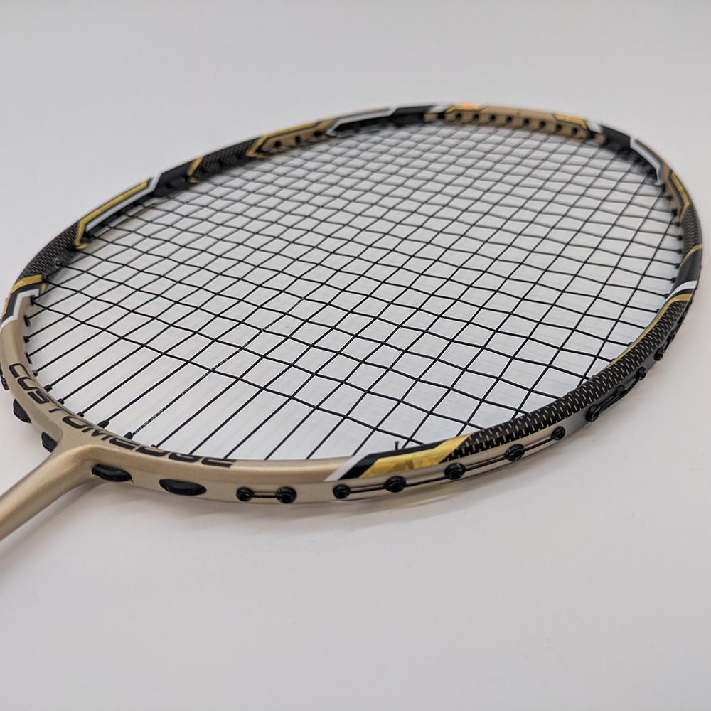 This racquet starts at the top with a 9.0mm frame, a 6.5mm at the shaft’s pending point which gradually joins and becomes a 7.5mm stiff shaft. It gives a hard feeling, whilst providing exceptional control and power. Perfect for those who have a strong wrist and want to increase the accuracy of their smashes.