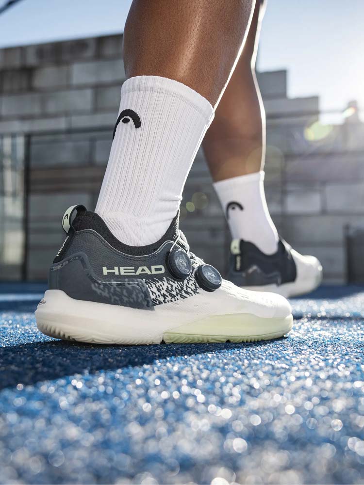 Key Highlights – BOA® Dual Li2 Fit System: Replaces traditional laces with a micro-adjustable dial system. This allows for a precision, painted-on feel that eliminates pressure points and prevents foot slippage during heavy lateral movements. – Versatile Fit: Designed with a Medium Fit, offering a comfortable balance of space in the toe box and secure support through the midfoot, suitable for average to slightly wider feet. – Padel-Specific Outsole: Equipped with HEAD’s Motion Tread, the shoe is engineered specifically for the grip and agility required on artificial grass and synthetic turf. – All-Court Performance: Designed to balance speed and support, making it ideal for competitive athletes who frequently change direction and pivot near the walls.