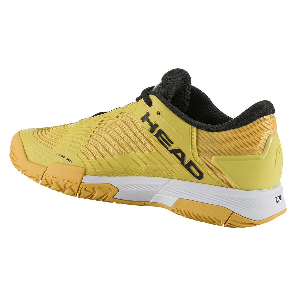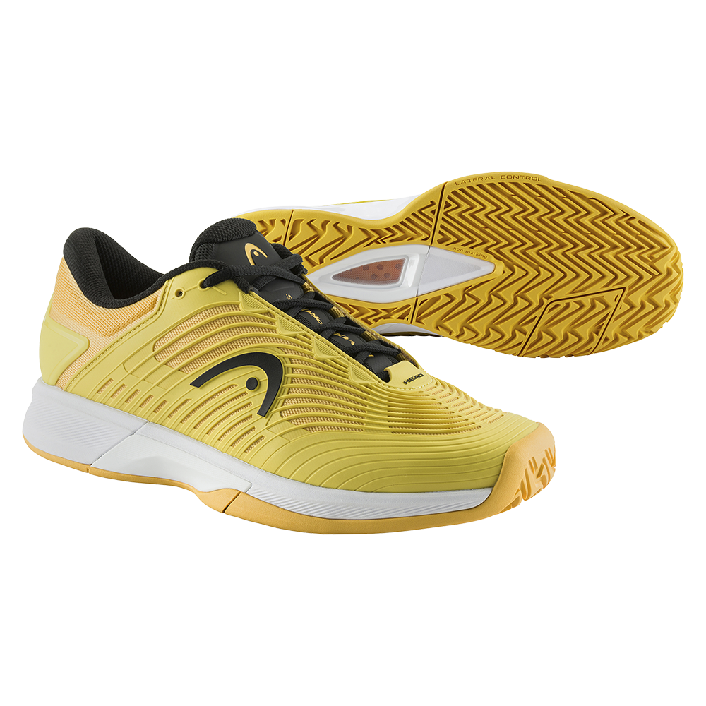 Take your tennis game to the next level with the HEAD REVOLT PRO 4.5 MEN tennis shoe, meticulously crafted for the aggressive base liner in search of unparalleled stability and flexibility. Constructed with a revamped upper design, this shoe effortlessly meets the rigorous demands of players and adversaries alike. Loaded with state-of-the-art performance features, it provides unwavering durability, robustness, and steadiness while ensuring supreme cushioning and comfort during extended matches.Benefit from heightened foot support courtesy of the advanced lacing system upgraded with the HEAD Lockdown Strap, while the HEAD Heel Stabilizer 180º enhances overall stability. Sporting a sleek, vibrant yellow aesthetic and enhanced flexibility, the REVOLT PRO 4.5 MEN shoe is your ultimate on-court companion, ready to elevate your performance with every stride.