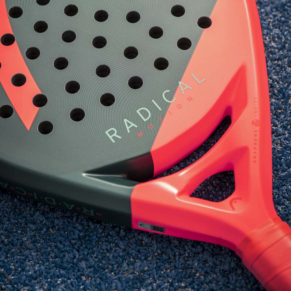 The RADICAL MOTION 2026 is a padel racket designed for advanced and competitive players seeking an optimal balance of precision and manoeuvrability. Its light weight and low balance contribute to a smooth, controlled feel during play. Similar to the PRO model, it incorporates a double layer of carbon fibre, Auxetic 2.0 technology, improved Control Foam, and a new hole pattern to enhance stability and feel upon impact.The Radical 2026 series is a launch that combines lightness, control and versatility. This range adapts perfectly to competitive players looking for tactical precision on the court.