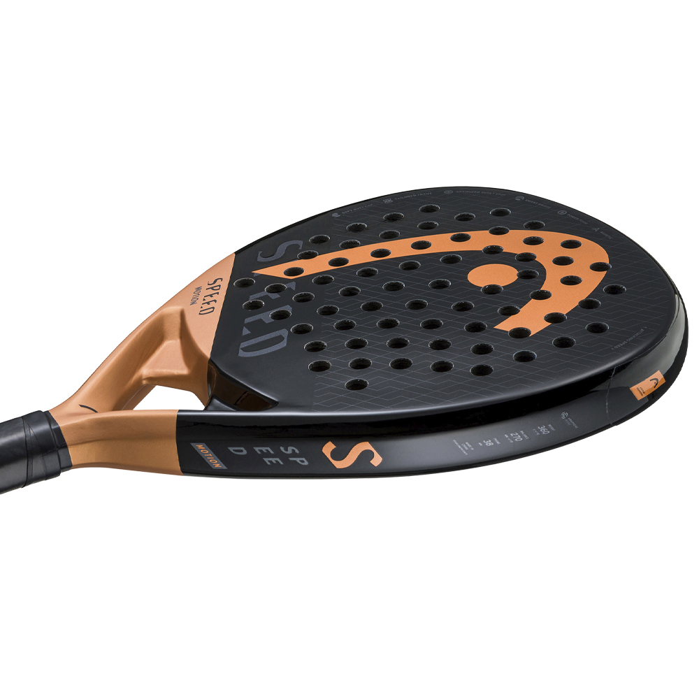 Play that split-second faster, and find your winning edge, with the versatile, manoeuvrable SPEED MOTION. Enjoy attacking speed with the lightest racquet in the series, which is endorsed by Ari Sanchez, and offers a mix of power and control. Advanced players can easily mix it up with a teardrop-shaped racquet that has been upgraded with innovative Auxetic technology for extra power and sensational impact feel. Along with a hybrid hitting surface made from woven carbon and fiberglass, the SPEED MOTION has a new Soft Butt Cap that enhances feeling and touch. With the copper accent, the design is fresh, modern and distinctive.