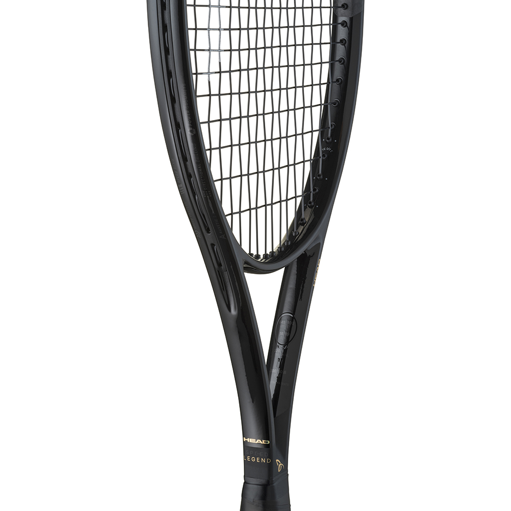 The HEAD SPEED PRO LEGEND 2026 is a premium tennis racquet inspired by and co-designed with Novak Djokovic. This model features an elegant, high-end design with a glossy black finish and gold accents, including Djokovic’s logo and the HEAD branding. These golden details are a tribute to his on-court successes and his preferred colour.