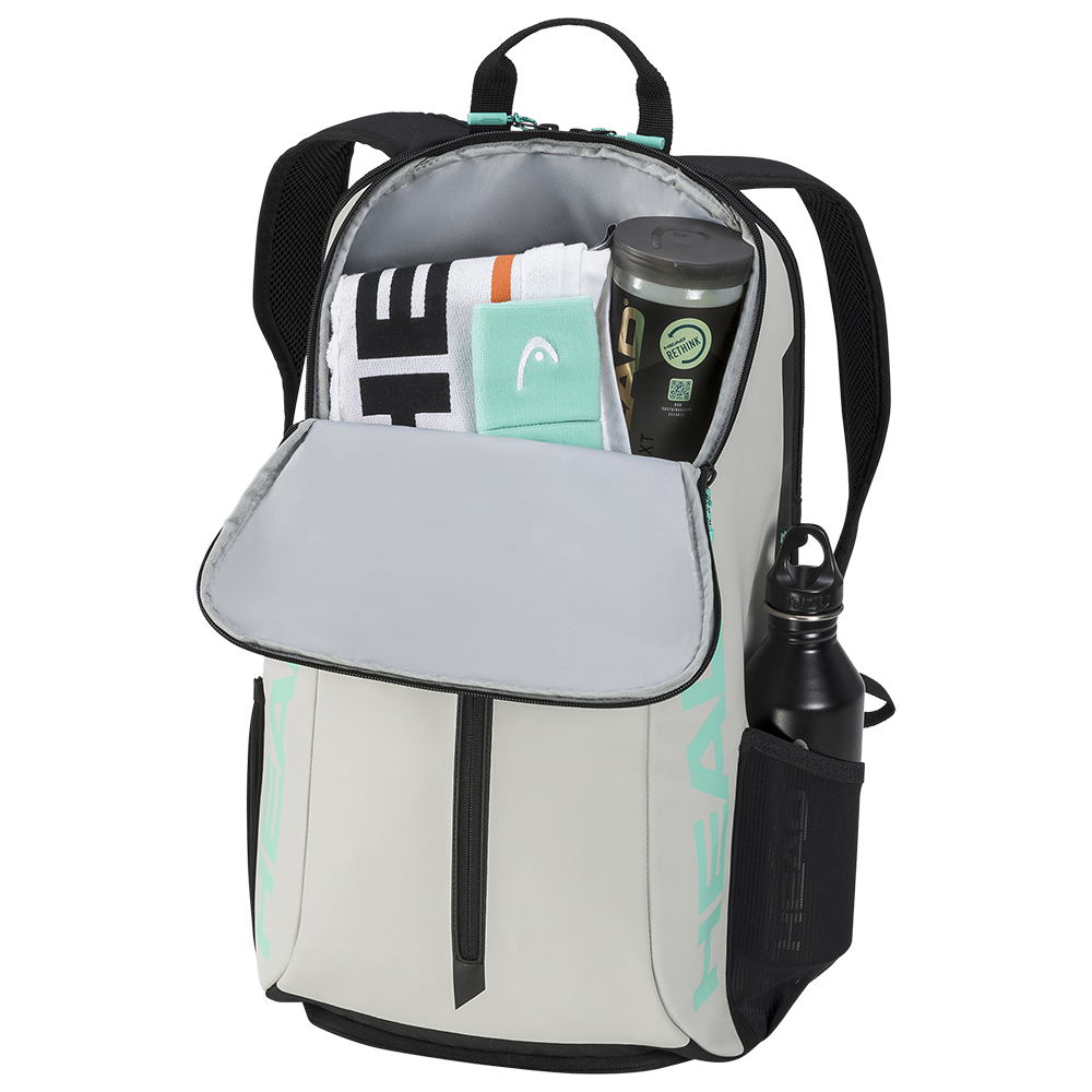 Offered with a fresh design and new padding for extra stability, the TOUR BACKPACK 25L is perfect for a trip to the courts.Showcase your style with the TOUR BACKPACK 25L, which has a fresh and contemporary design. New padding enhances the stability of a bag that has a racket compartment for one or two rackets, along with a main compartment and an integrated shoe department. When you are on the move, you can easily access your essentials, thanks to the outside zipper pocket and two mesh side pockets. As an illustration of how HEAD is trying to reduce plastic usage, the hangtag is made from recycled paper and tied with hemp cord, and the bag is presented in a new recycled plastic bag.• New design• New padding for extra stability• Main compartment• Racket compartment for one or two racquets• Integrated shoe compartment• Outside zipper pocket• Two mesh side pockets• Hangtag made with recycled paper and hemp cord• Presented in new recycled plastic bagVOLUME (L):25DIMENSIONS:33.5*51*25MATERIAL COMPOSITION (OUTSIDE):75% Polyester / 25% TPUMATERIAL COMPOSITION (INSIDE):100% Polyester