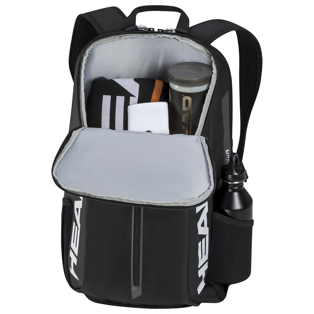 Offered with a fresh design and new padding for extra stability, the TOUR BACKPACK 25L is perfect for a trip to the courts.Showcase your style with the TOUR BACKPACK 25L, which has a fresh and contemporary design. New padding enhances the stability of a bag that has a racket compartment for one or two rackets, along with a main compartment and an integrated shoe department. When you are on the move, you can easily access your essentials, thanks to the outside zipper pocket and two mesh side pockets. As an illustration of how HEAD is trying to reduce plastic usage, the hangtag is made from recycled paper and tied with hemp cord, and the bag is presented in a new recycled plastic bag.• New design• New padding for extra stability• Main compartment• Racket compartment for one or two racquets• Integrated shoe compartment• Outside zipper pocket• Two mesh side pockets• Hangtag made with recycled paper and hemp cord• Presented in new recycled plastic bagVOLUME (L):25DIMENSIONS:33.5*51*25MATERIAL COMPOSITION (OUTSIDE):75% Polyester / 25% TPUMATERIAL COMPOSITION (INSIDE):100% Polyester