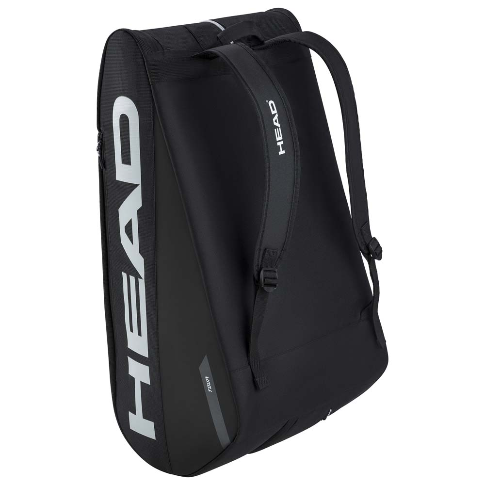 – Massive 12-racket capacity – 3 spacious primary compartments – CCT+ thermal lining for racquet protection – Dual oversized external accessory pockets – Quick-access exterior phone sleeve – Integrated ventilated shoe garage – Internal zippered security pocket – Reinforced padding for enhanced structural stability – Ergonomic top handles – Dual-way backpack carry system