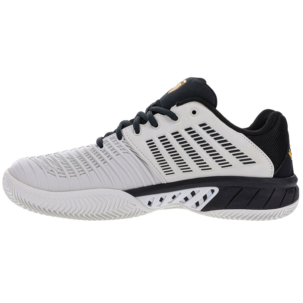 Express Light 3 HB is a lightweight tennis shoe designed for on-court performance and a great level of comfort. As the updated model of its successful predecessor, the upper features DuraWrap Flex, a newly designed molded RPU cage that provides flexible support and drag protection. On the inside, a well-padded ankle collar provides comfort and stability while a die-cut foam sock liner adds responsive cushioning underfoot. The Express Light 3 has HB outsole featuring deeply grooved herringbone patterns for exceptional traction on clay court surfaces.