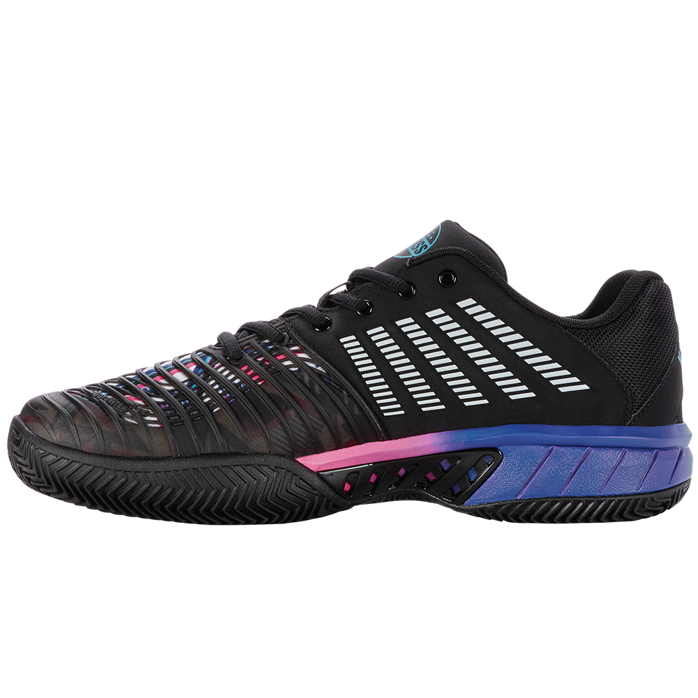 Express Light 3 HB Padel is a lightweight shoe designed for on-court performance and a great level of comfort.The upper features DuraWrap Flex, a newly designed molded RPU cage that provides flexible support and drag protection.On the inside, a well-padded ankle collar provides comfort and stability while a die-cut foam sock liner adds responsive cushioning underfoot.The Express Light 3 has HB outsole featuring deeply grooved herringbone patterns for exceptional traction on indoor/outdoor padel court surfaces.