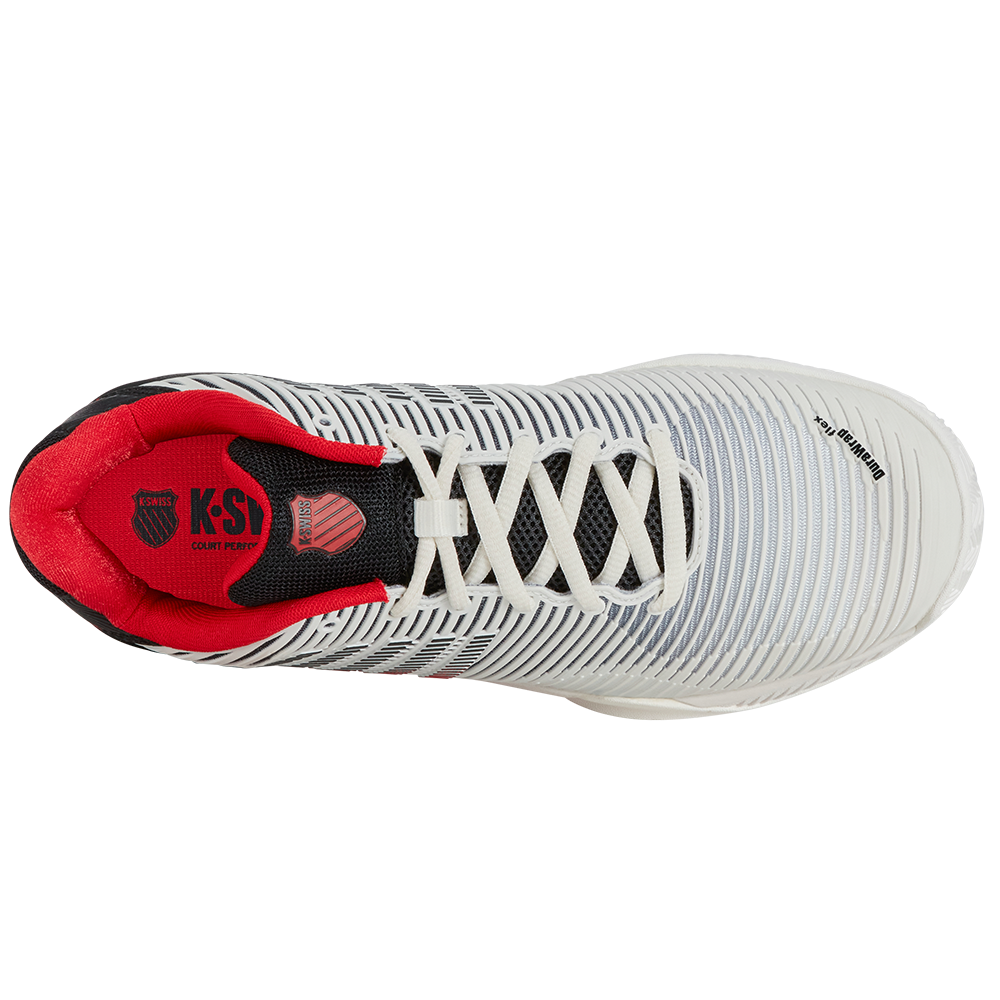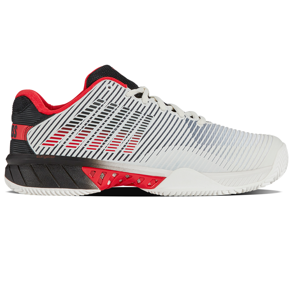 The K-Swiss Hypercourt Express 2, K-Swiss’ best-selling shoe, is renowned for its lightweight design, comfort, breathability, and generous fit, making it perfect for players of all styles and skill levels. The Durawrap Flex technology offers immediate support with no break-in period, while the Surgelite midsole ensures all-day comfort.