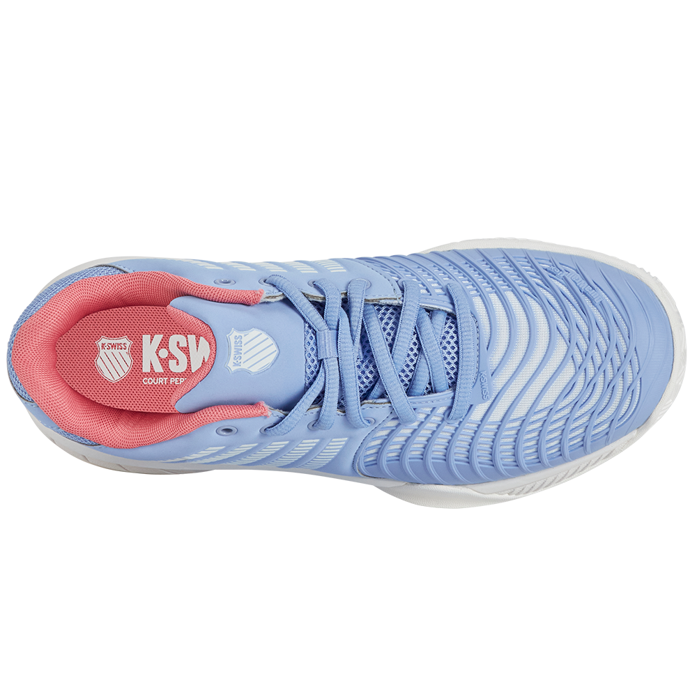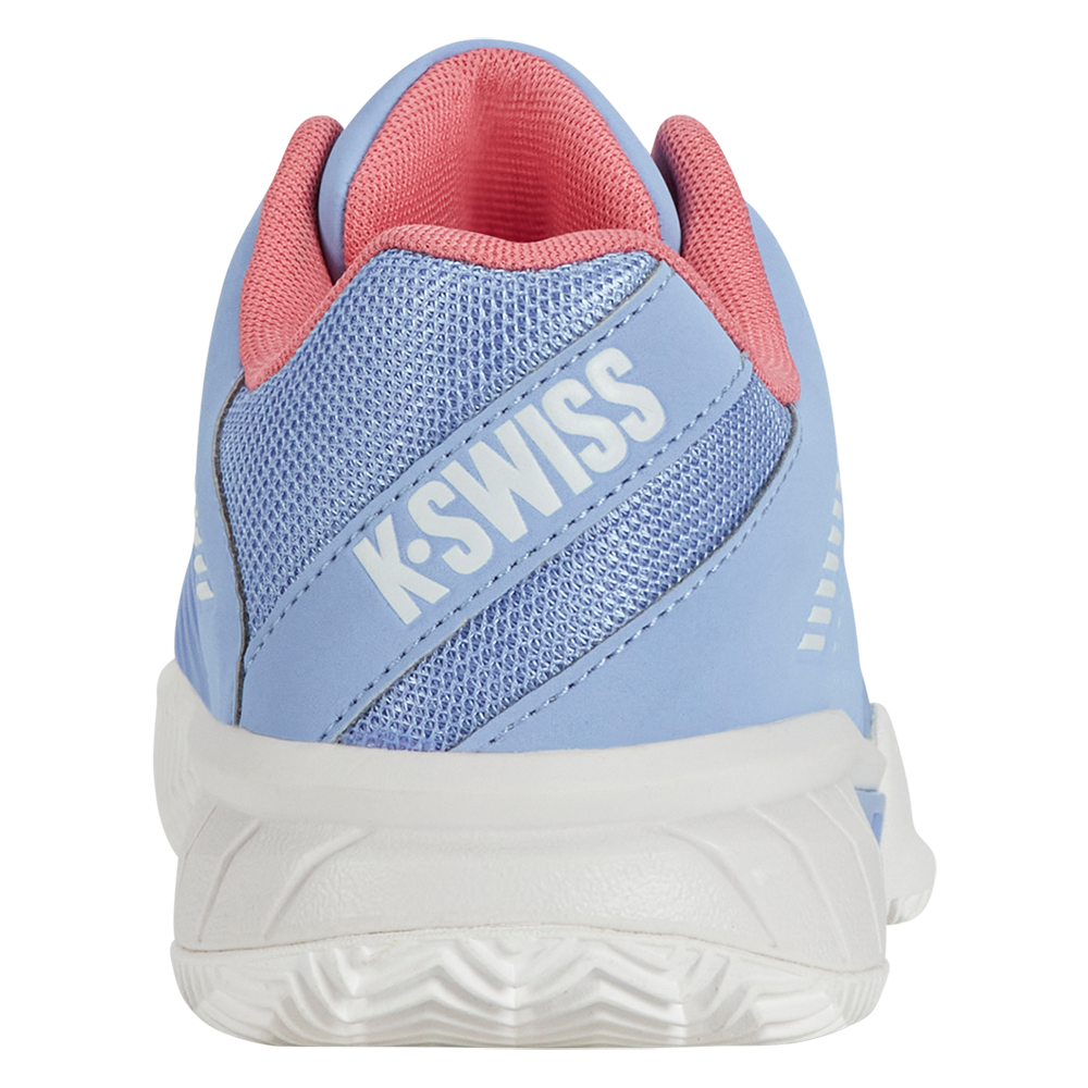 The Express Light 3 is a lightweight tennis shoe crafted for exceptional on-court performance and comfort. As the updated version of its popular predecessor, it features an upper with DuraWrap Flex, a newly designed molded RPU cage that offers flexible support and drag protection. Inside, the well-padded ankle collar ensures comfort and stability, while a die-cut foam sock liner provides responsive cushioning. The outsole, made with K-Swiss’ signature Aösta 7.0 high-density rubber and deep herringbone tread, delivers unmatched durability and performance on all court surfaces.