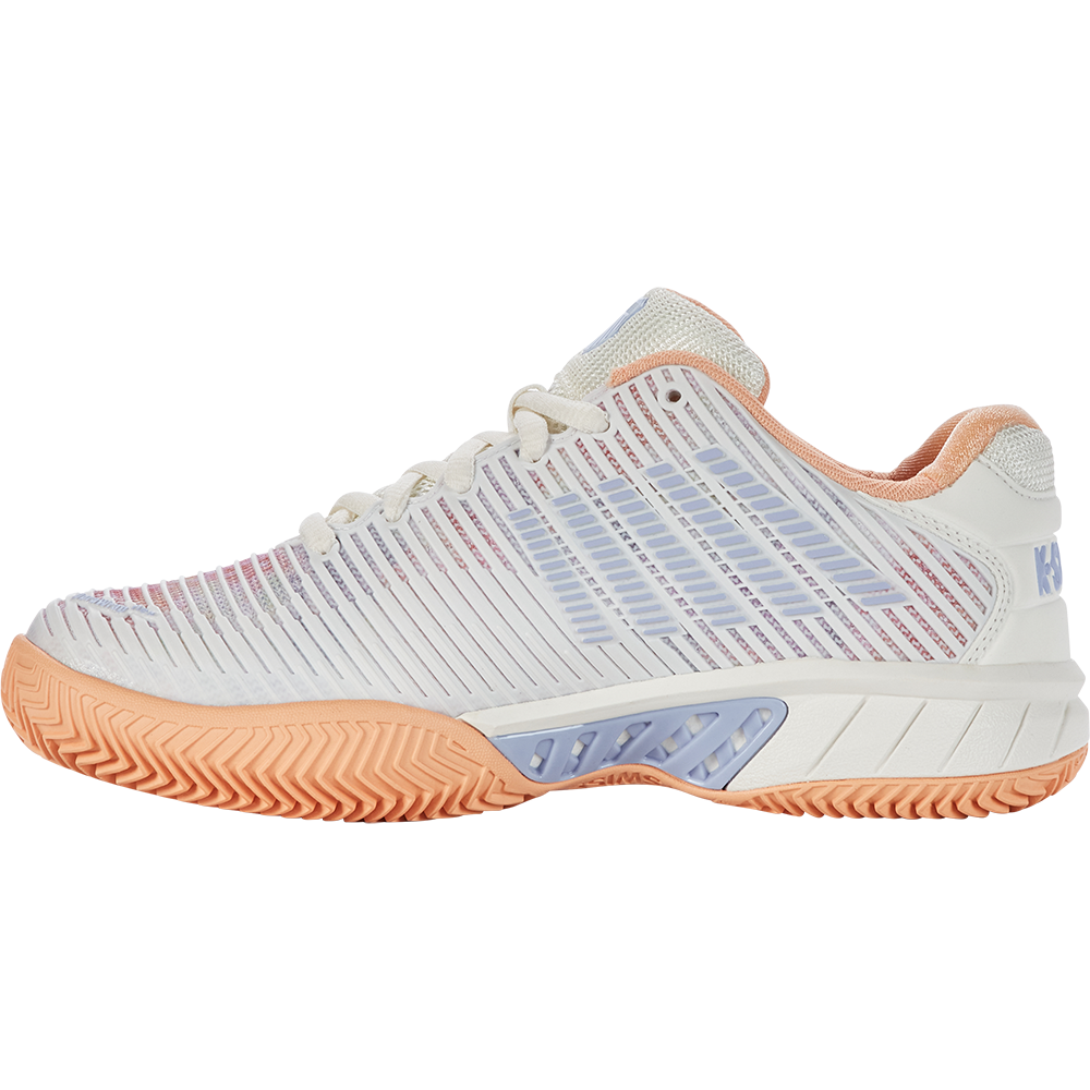 The Hypercourt Express 2, is light, comfortable, breathable, and has a generous fit, making it the ideal choice for a variety of playing styles and levels. Durawrap Flex, gives the shoe support with no break-in period, while Surgelite midsole technology provides all day comfort. This HB sole is suitable for gravel surfaces, artificial grass courts and smash courts. The deep grooves in a herringbone pattern provide maximum grip on the court.