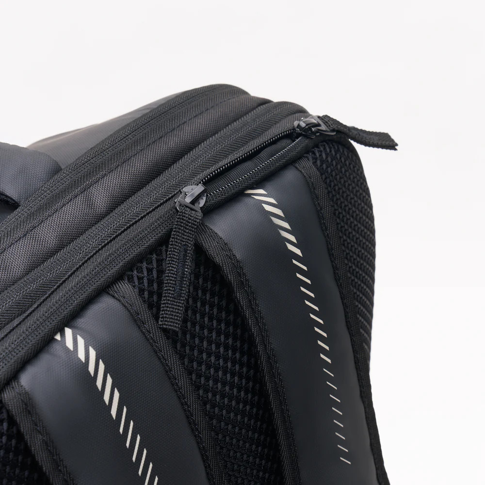 The Intoku backpack has a clean, modern design. It has an expanding function which offers an extra 20% volume inside the bag. The main compartment opens wide so it’s easy to organise and see what’s inside. It has a separate compartment for a laptop or rackets, with locked zips so they don’t open by themselves when travelling. The shoulder straps have a reflective print for increased safety when travelling in the dark. The foam-filled shell makes the backpack more robust and helps it maintain its shape when it’s not full.