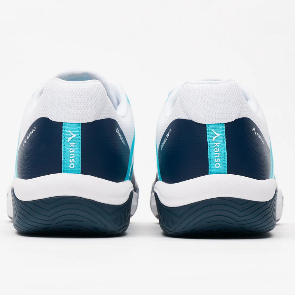 Key Features:NexX4™️ Liquid Vacuum Rubber Outsole: This revolutionary design delivers a 50% reduction in outsole weight while significantly enhancing grip and durability. By using less material, the NexX4™️ outsole also cuts the shoe’s carbon footprint in half, offering both performance and sustainability.SCF (Super Critical Foam) Rebound+: Integrated in the forefoot, SCF technology maximises energy return during jumps and lunges. It’s 29% lighter than traditional SLF foam and offers a 13% increase in rebound, providing explosive power with every movement.DragonFly Upper: Featuring a three-layer construction, the EQx3 upper delivers exceptional support for lateral movements. A lightweight, durable exo-skeleton cage made from ripstop material comfortably wraps around the foot for a secure fit, while dual-layer TPU toe protection ensures extra durability in high-impact zones.EQ Ultra Grip Outsole: Made from a lightweight rubber compound that’s 5% lighter and offers 38% better grip than natural rubber, this outsole is engineered for superior traction. Its unique pattern ensures maximum grip during fast, sharp movements.SpeedLightFoam (SLF) Midsole: Exceptionally responsive, SLF midsole technology provides high energy return, enhancing performance with every step. It’s 26% lighter and offers 32% better compression than standard midsoles, ensuring long-lasting comfort.SA+ Heel Pad Inserts: Specially designed to cushion impact during lunges, these inserts significantly reduce stress on the heels while improving overall comfort.TPU Torsion Unit: Strategically integrated for enhanced stability and optimal torsion, supporting rapid lateral movements and ensuring balance.Reinforced Upper: Welded TPU rubber reinforcements in high-wear areas further boost durability, ensuring the shoe withstands the intense demands of squash.Advanced Mesh Technology: The upper’s advanced woven mesh construction optimizes airflow and flexibility, keeping your feet cool and comfortable during fast-paced play.Tailored Heel Cup: Kanso’s signature firm heel cup design provides stability and support, ensuring quick and controlled movements on the court. The DragonFly is the perfect blend of innovative technology and performance-focused design, making it an ideal choice for athletes looking to elevate their game.